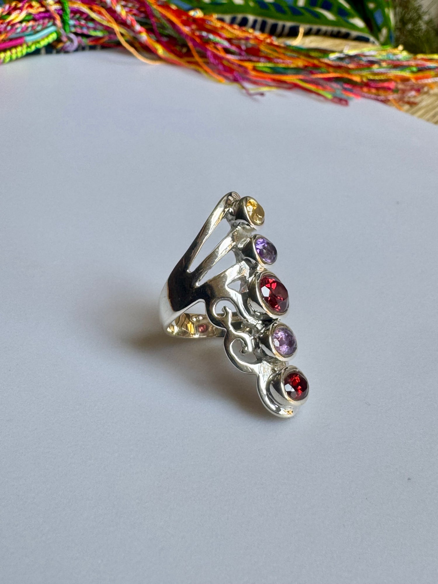 925 silver ring with amethyst/ruby root/citrine size 11-12 - G29