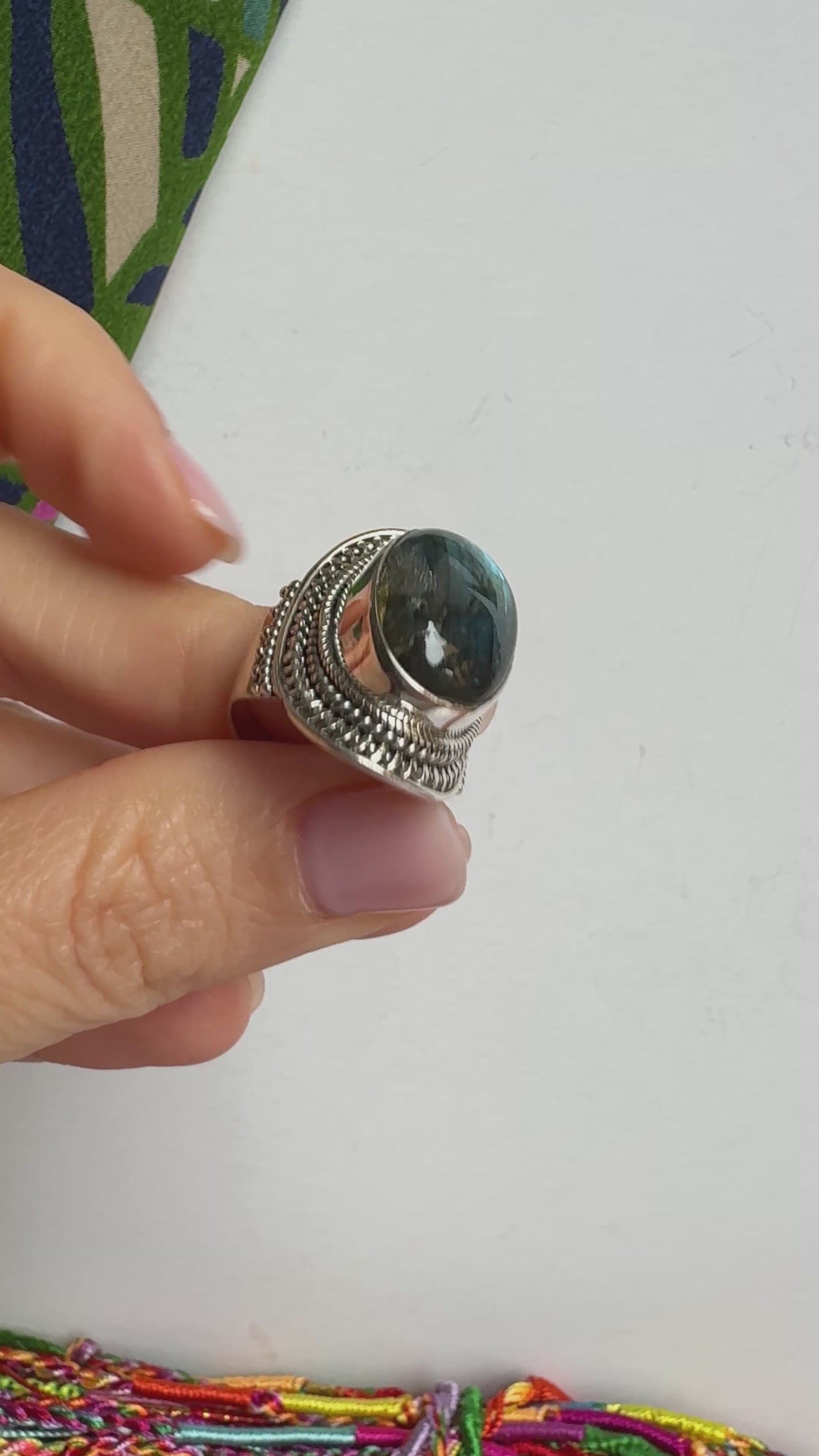 Anello argento 925 labradorite misura 14/15 - 28SZ