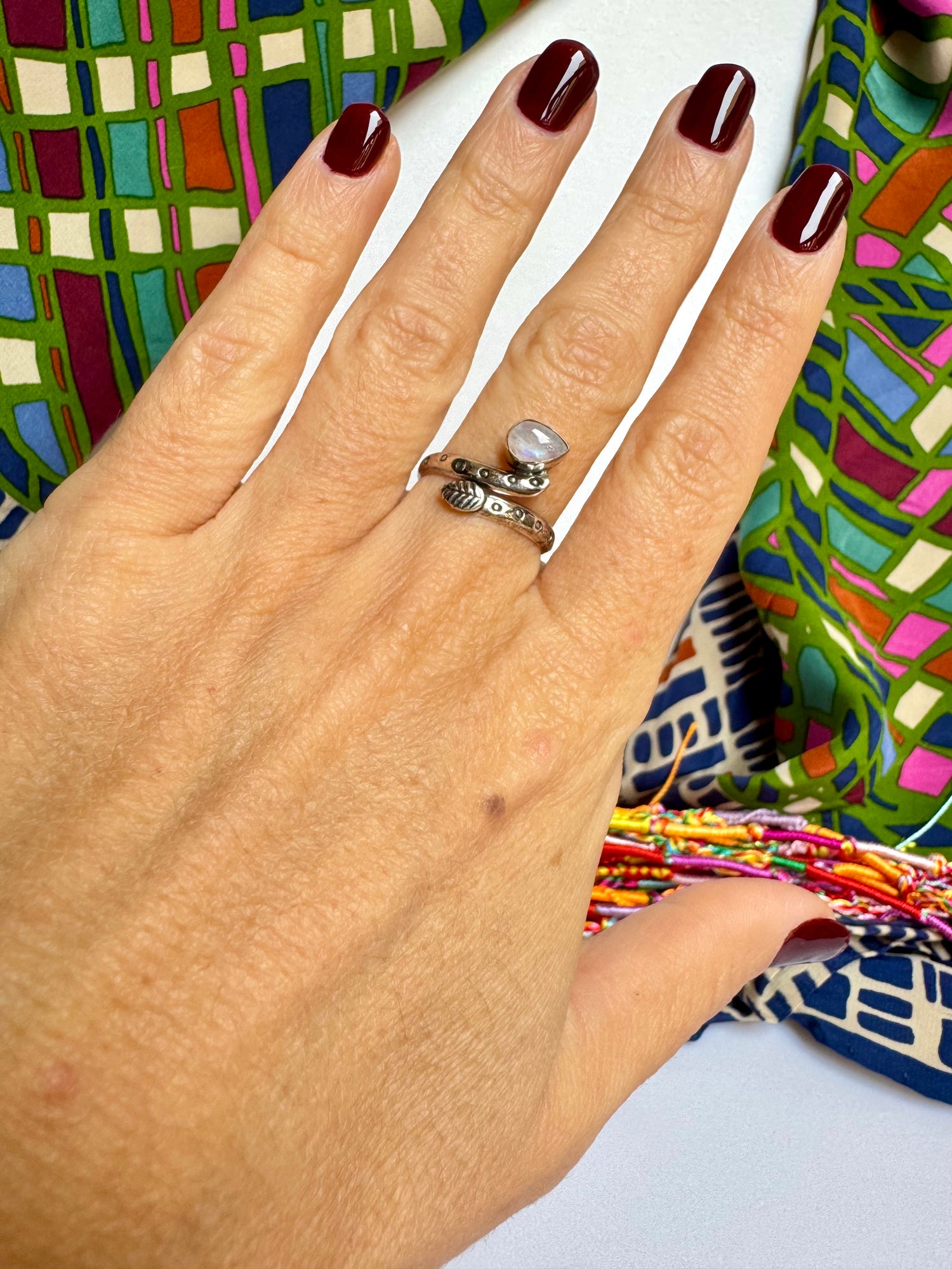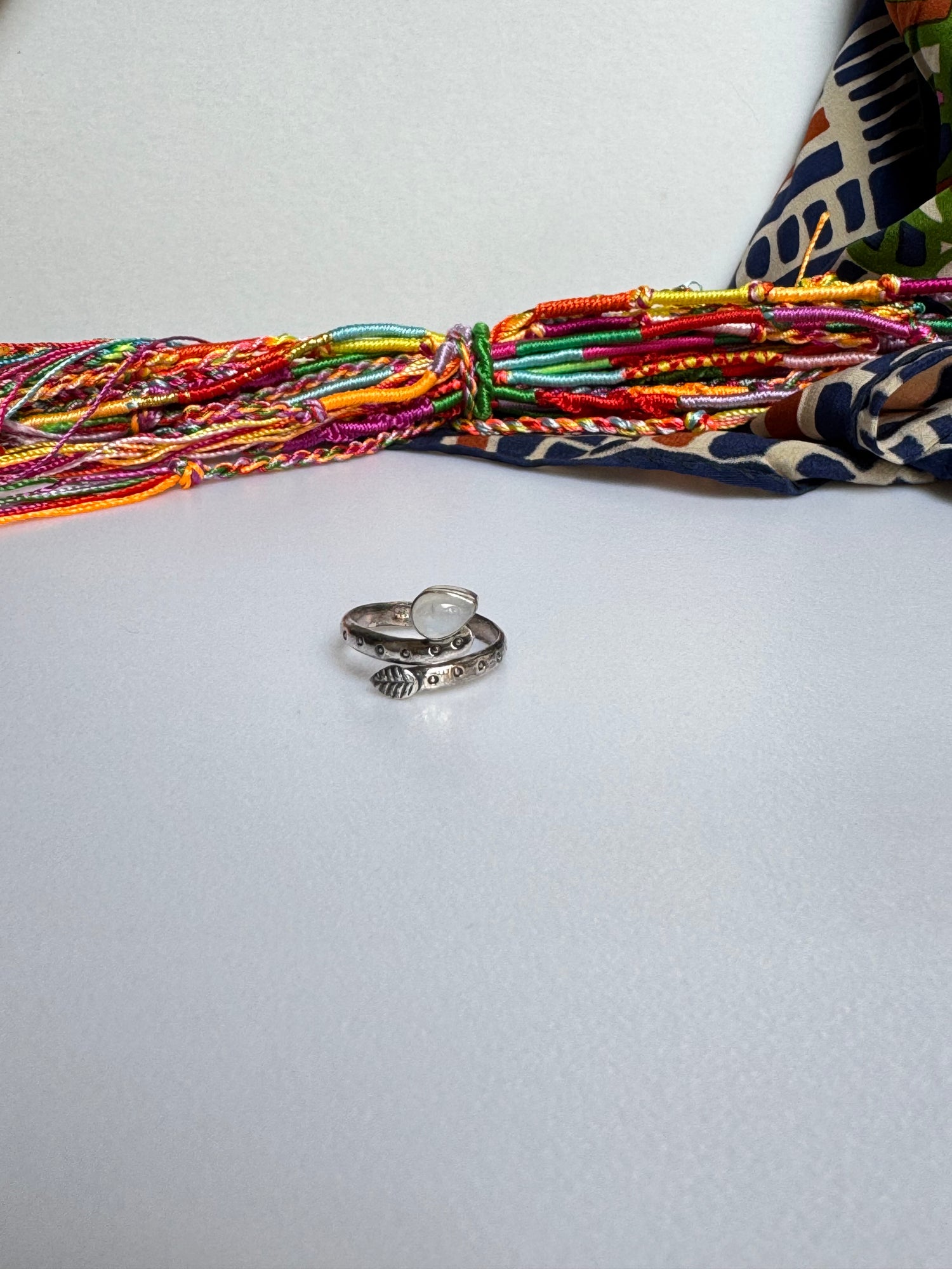Anello argento 925 Pietra di luna arcobaleno regolabile misura 17 M12