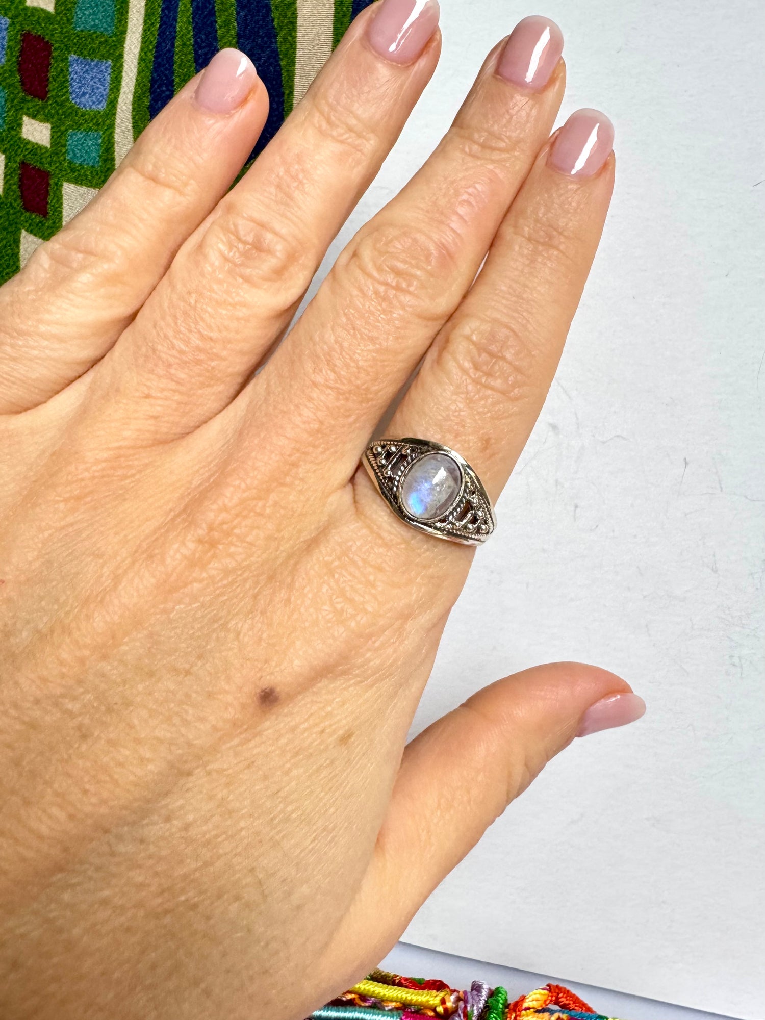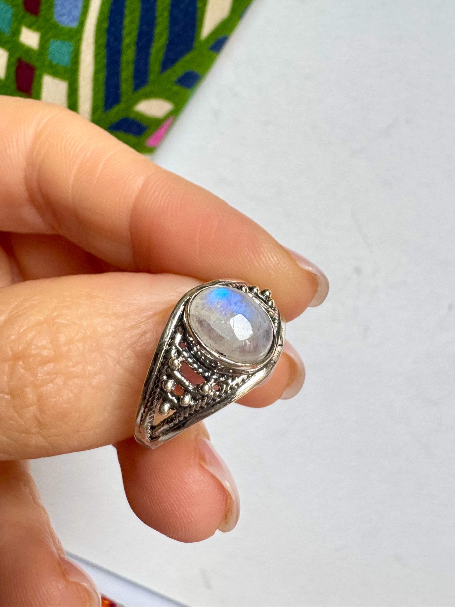 Anello argento 925 Pietra di luna arcobaleno misura 21/22 - 13SZ