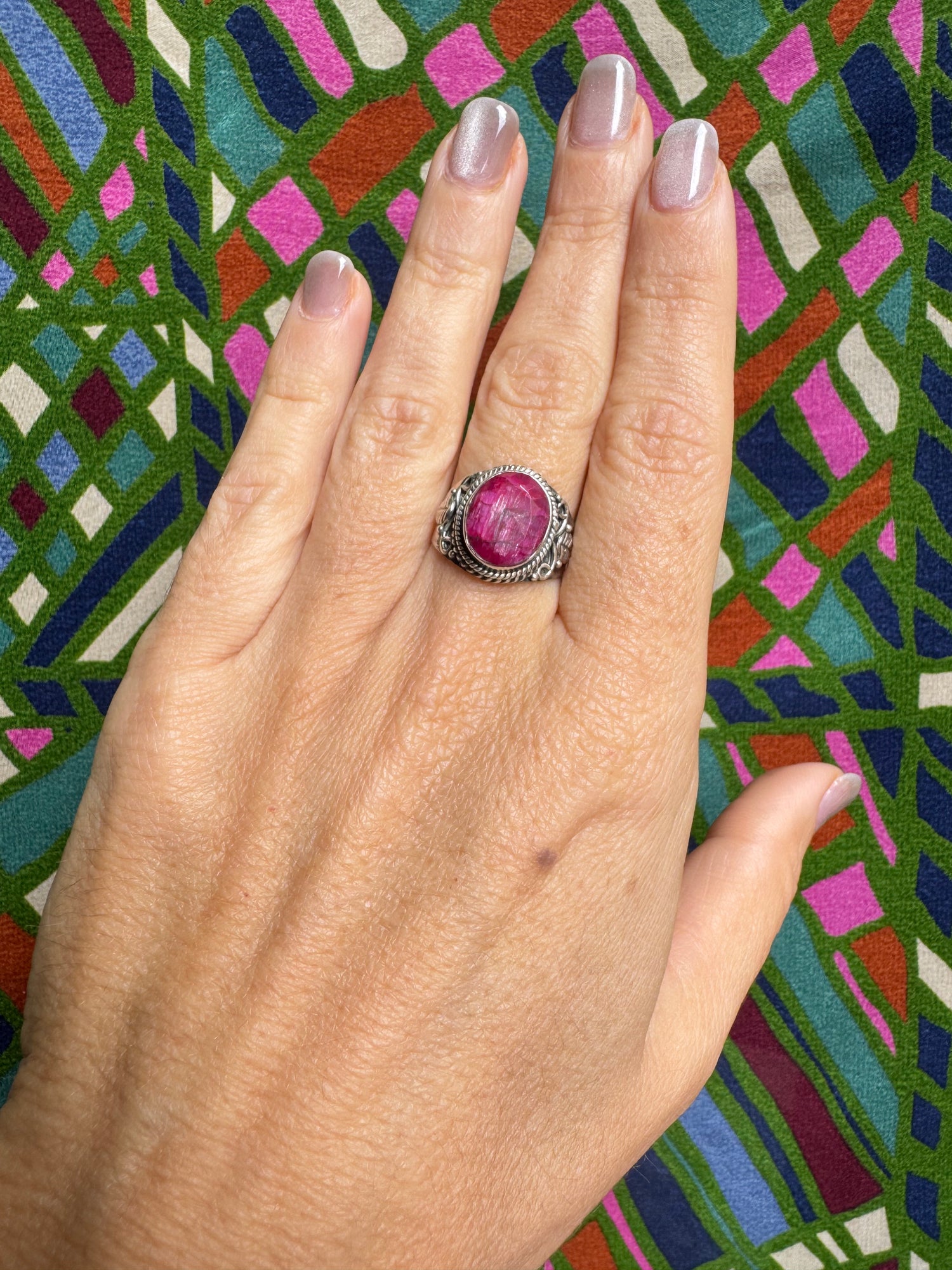 925 silver ring with ruby root, size 15 - 21AM