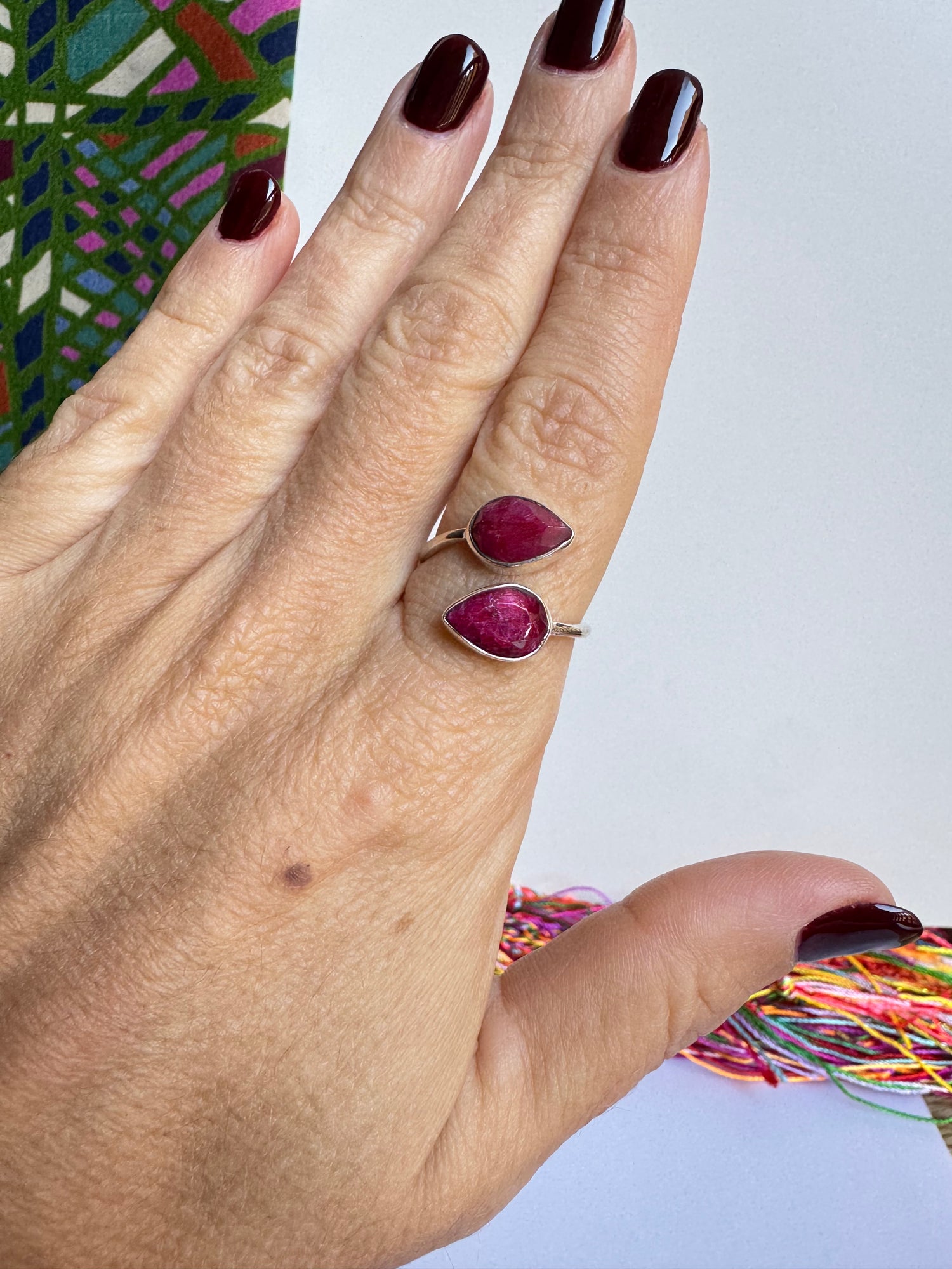Anello argento 925 radice di rubino regolabile da misura 17 M6