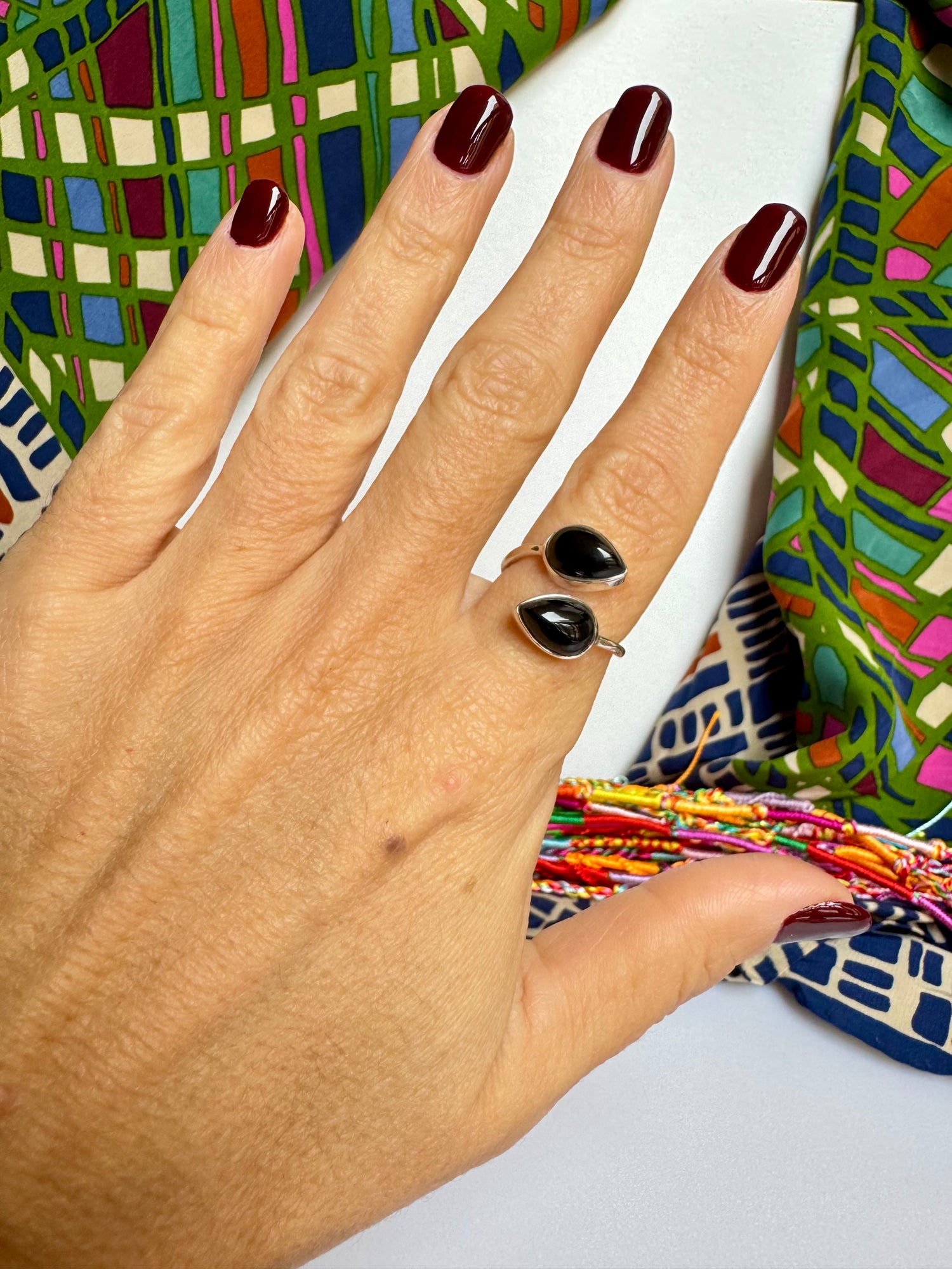Anello argento 925 onice nero regolabile misura 16 - 3ON