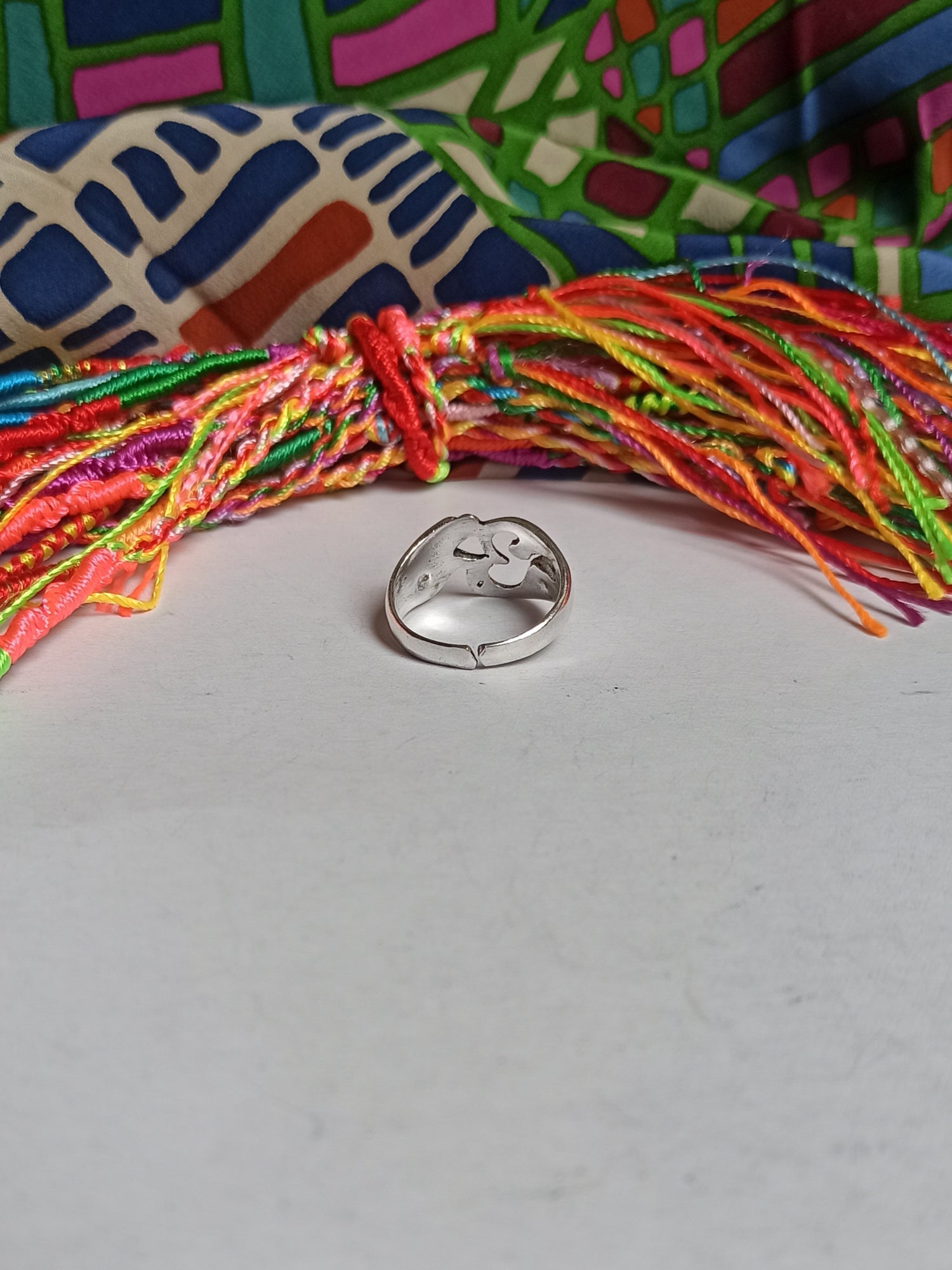 Hypoallergenic silver-plated brass ring. Adjustable.