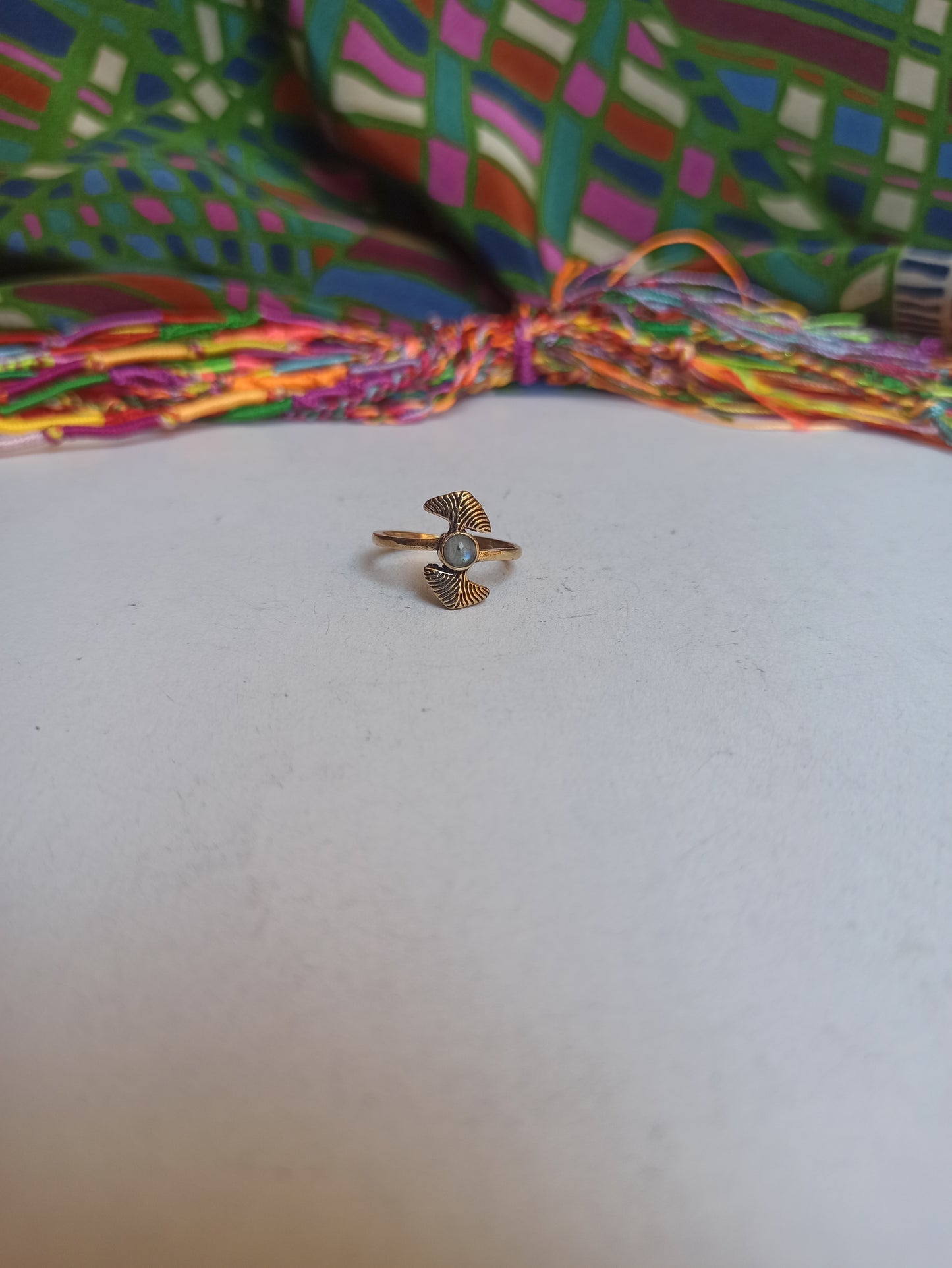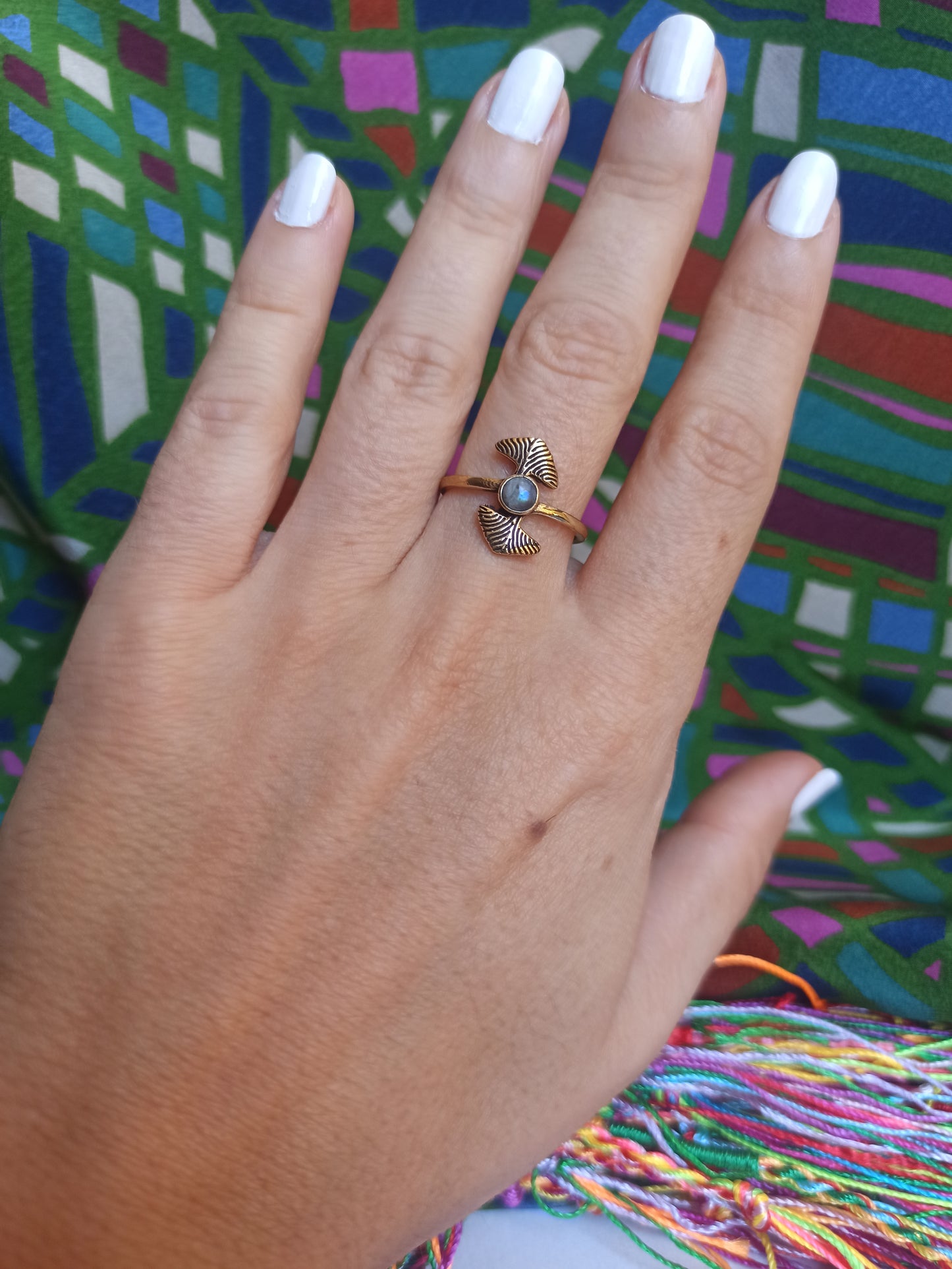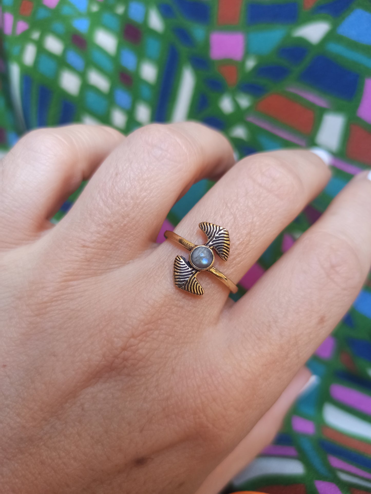 Hypoallergenic golden brass ring with labradorite. Adjustable.