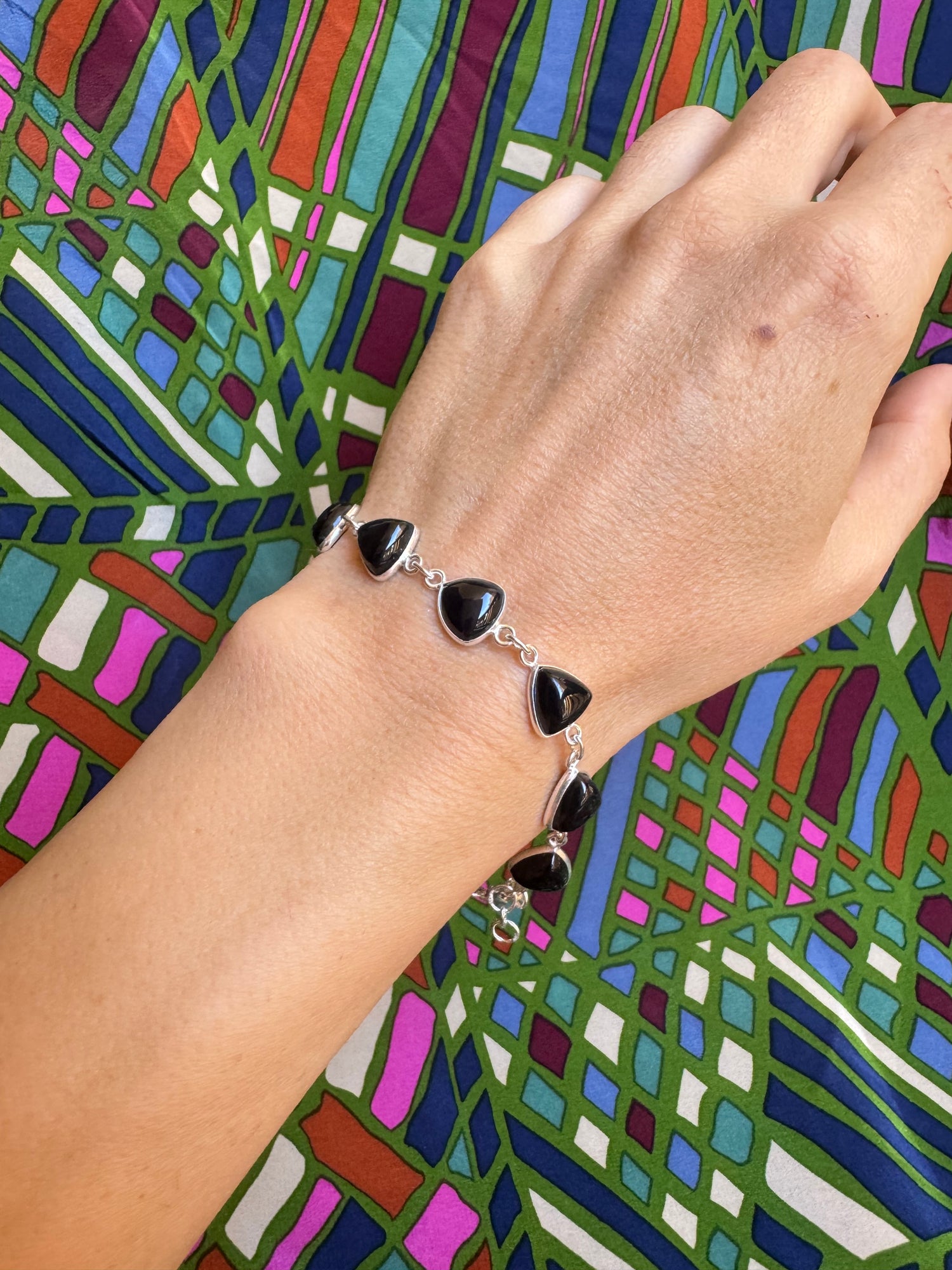 925 silver bracelet with black onyx drops. Length 18cm + 2cm chain.