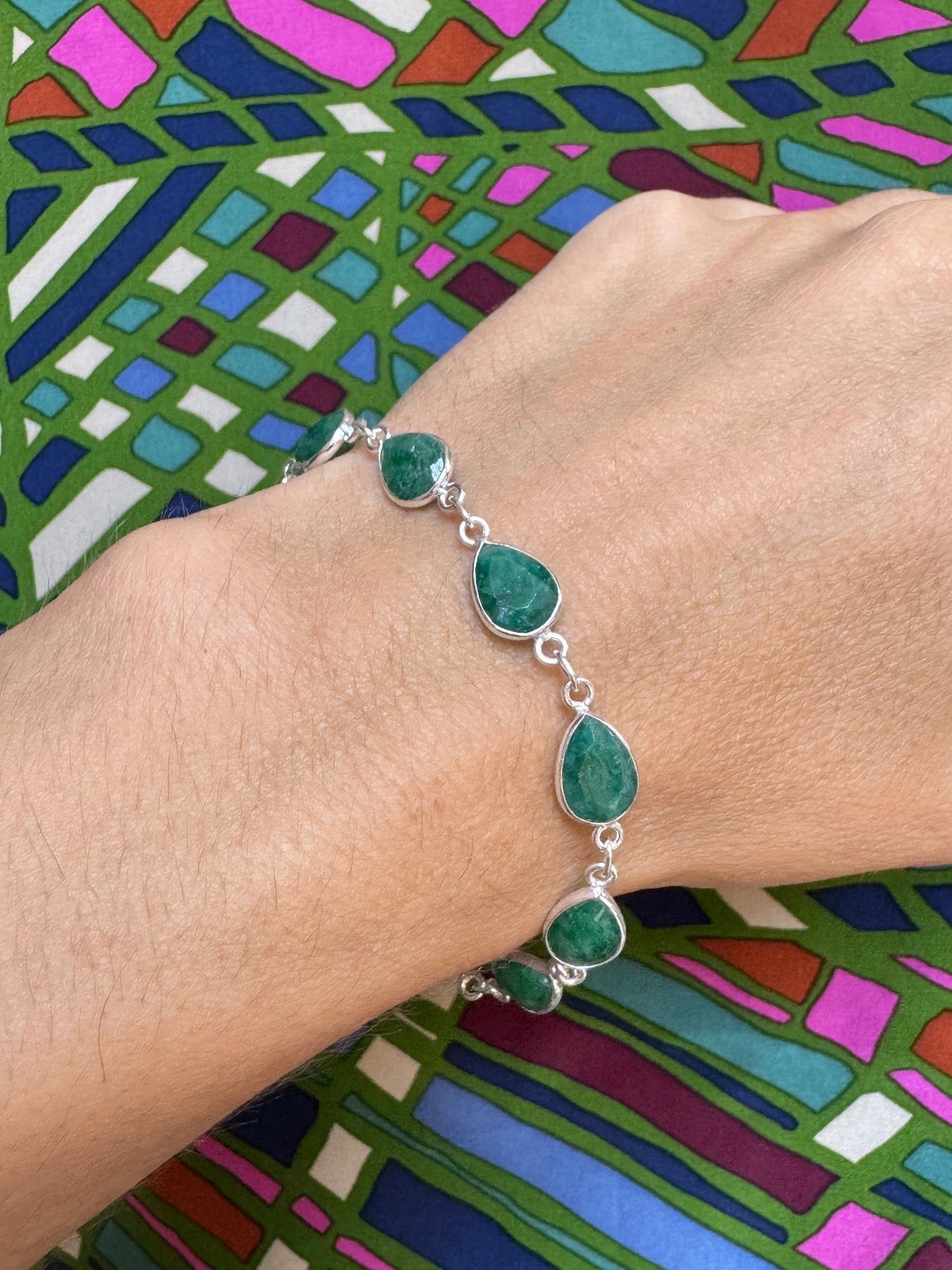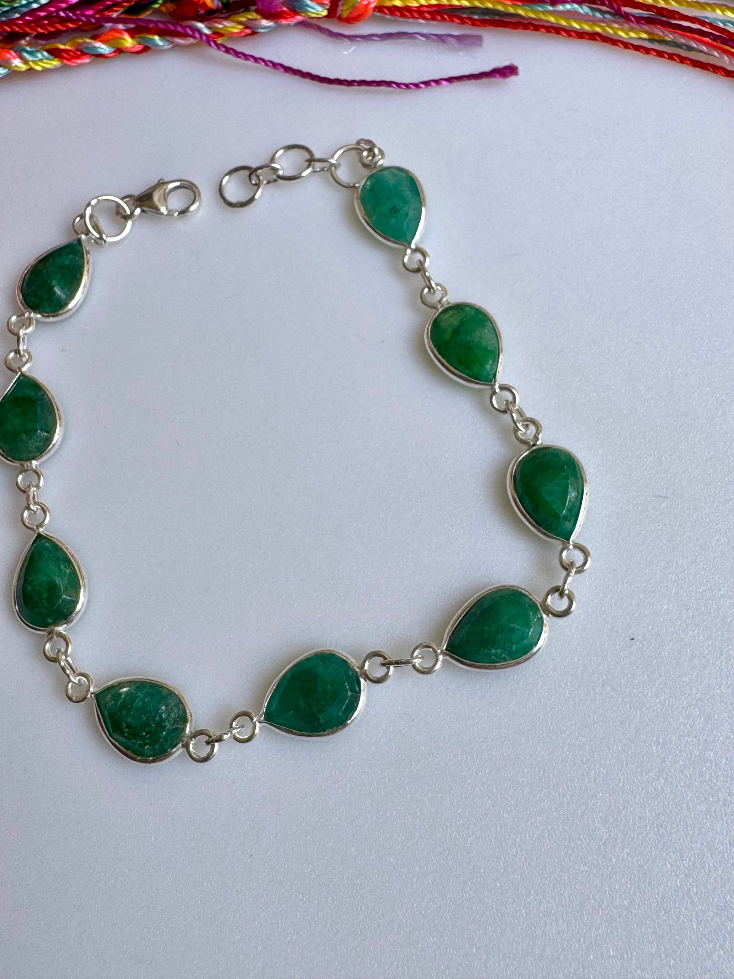 925 silver bracelet with raw emerald root drops. Total length 20cm.