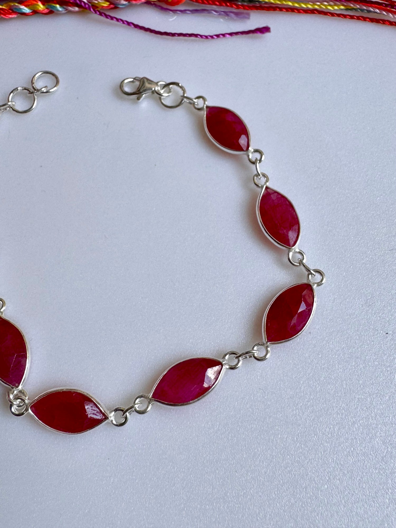 925 silver bracelet with ruby root drops. Total length 19.5 cm.