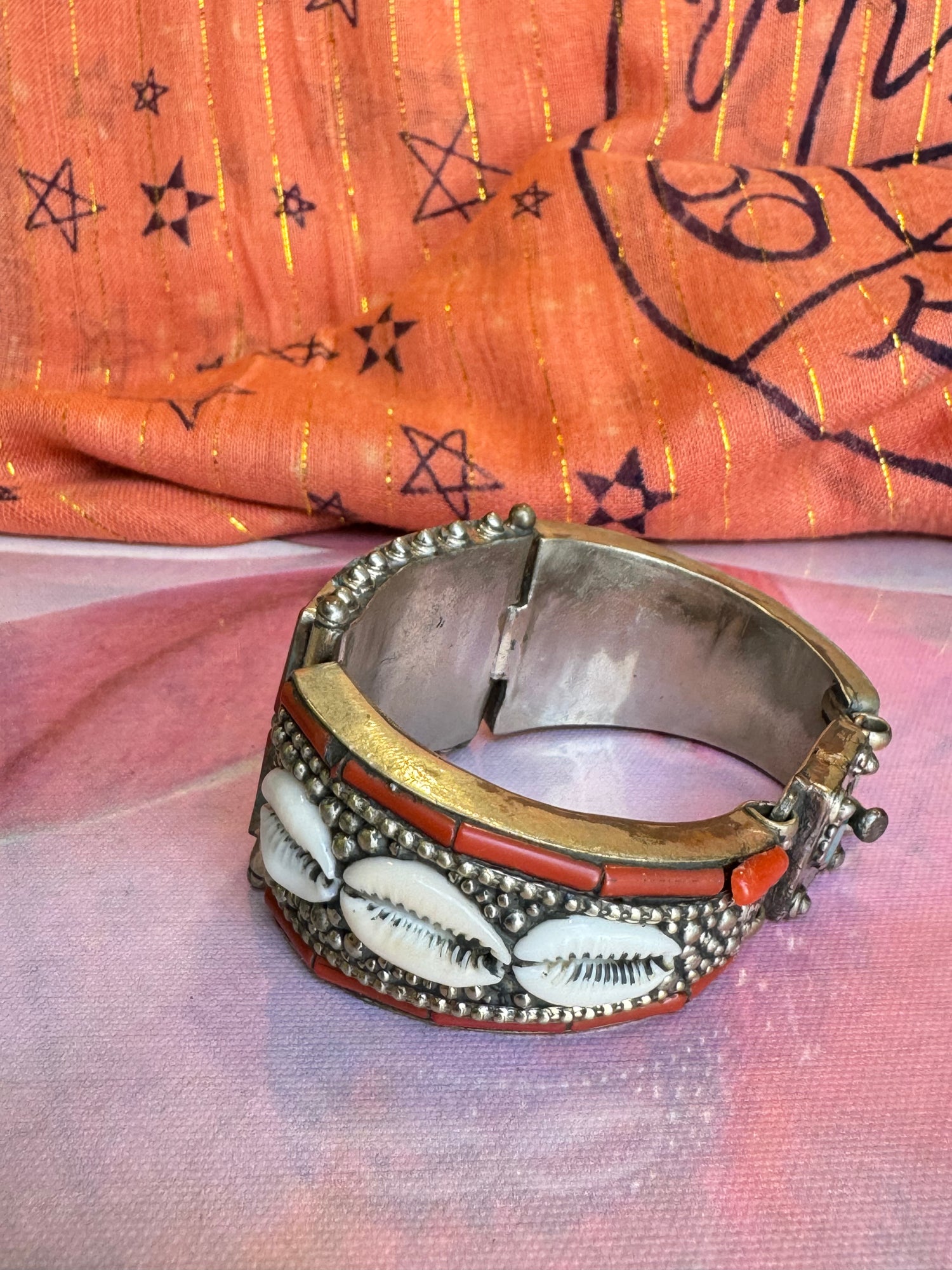 Nepalese bangle bracelet with turquoise flower and vintage shell