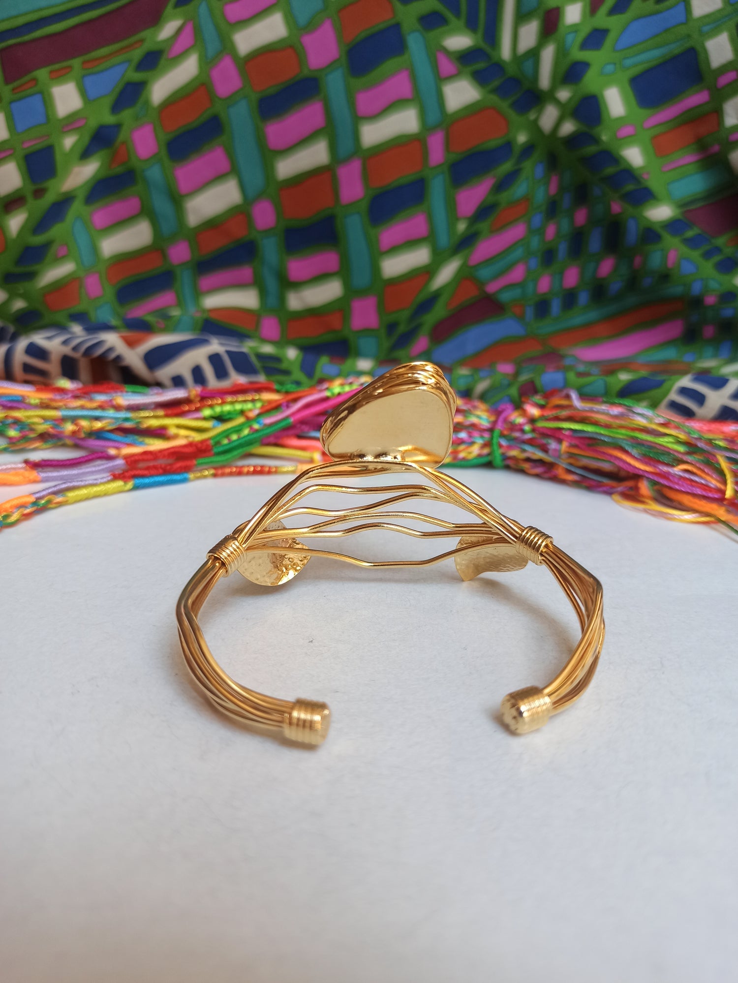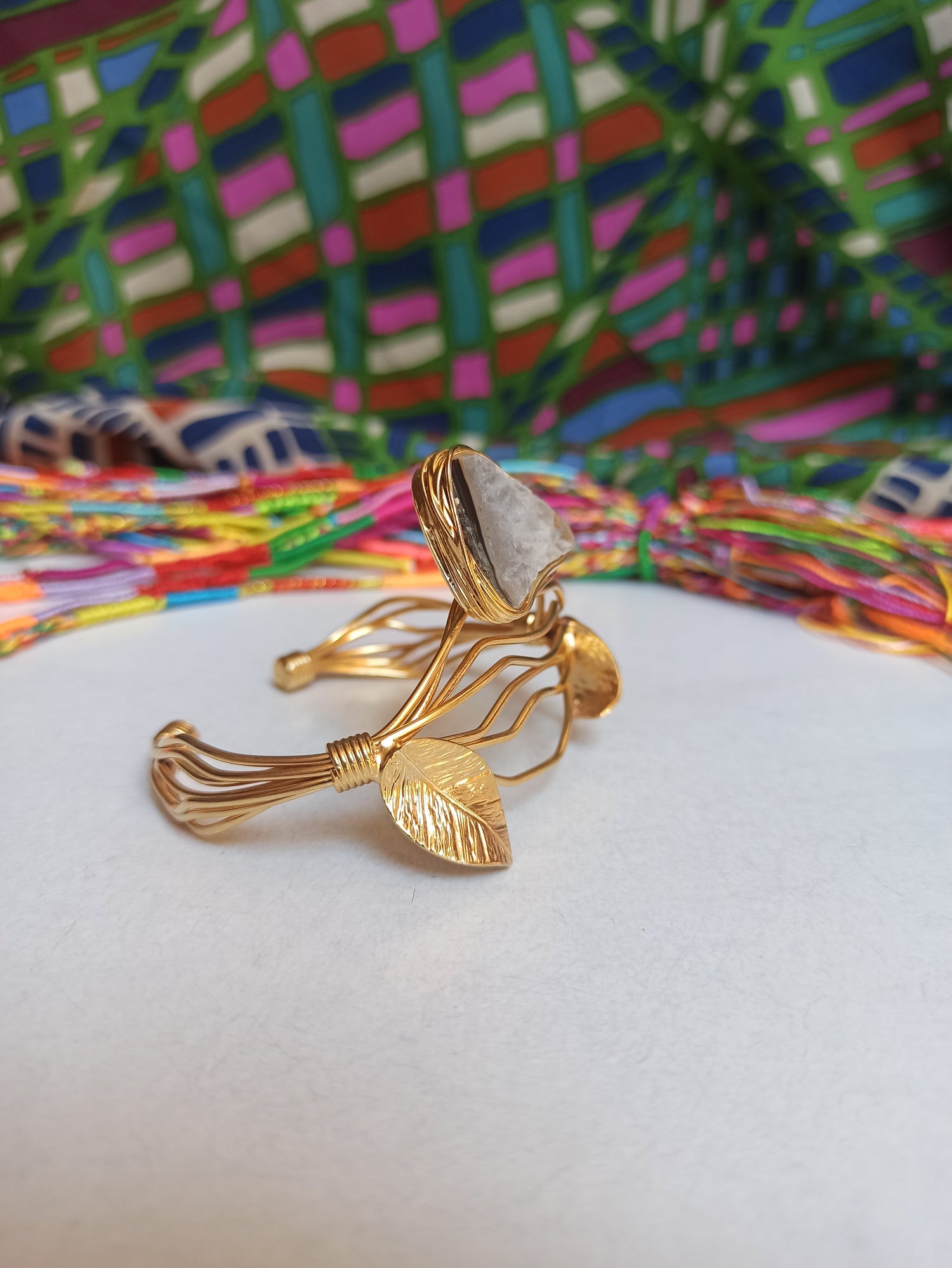 Rigid bracelet in golden metal alloy embellished with the setting of a wonderful slice of agate. Adjustable.