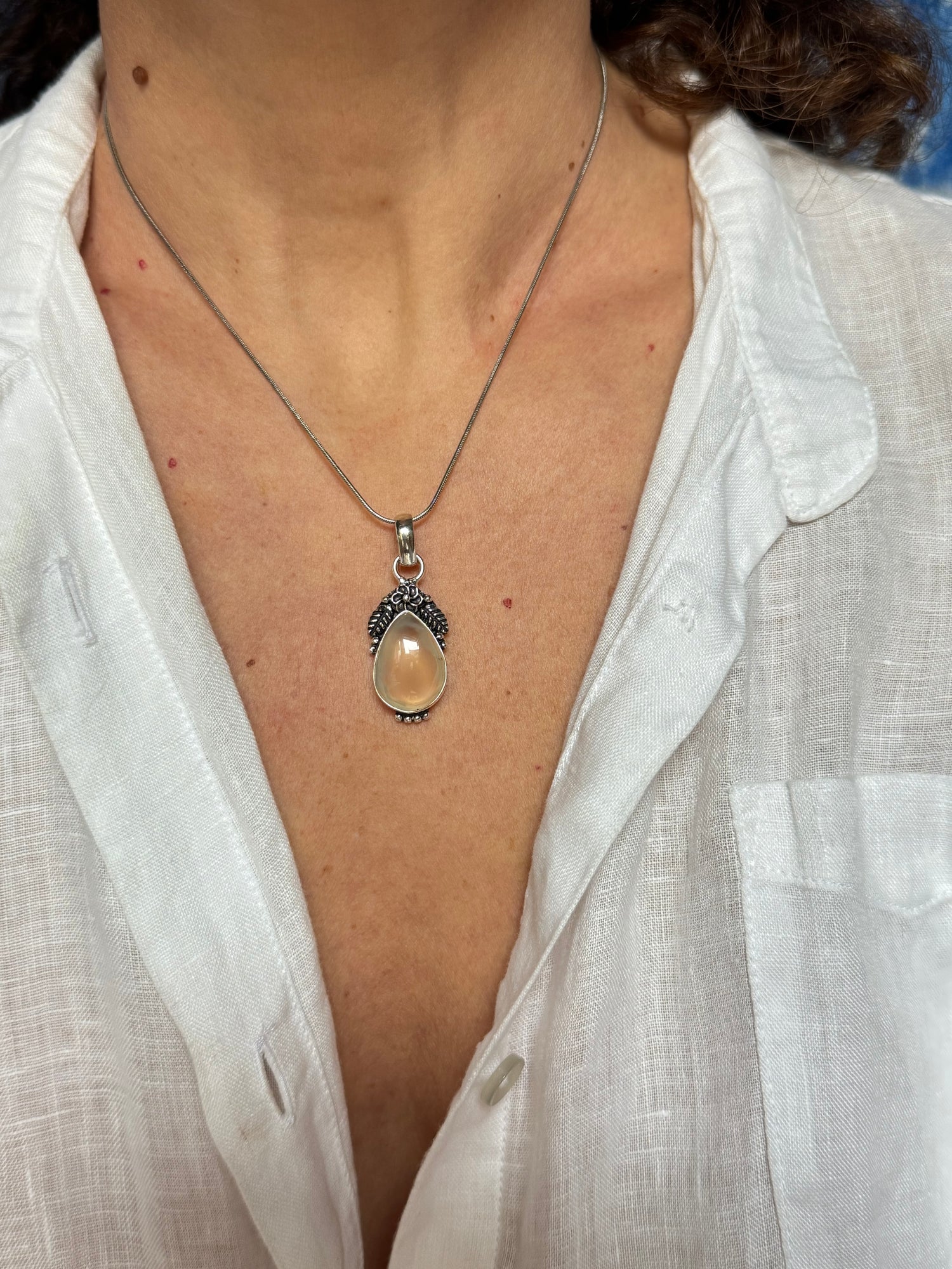 Ciondolo in ottone placcato argento con inserto di Agata.