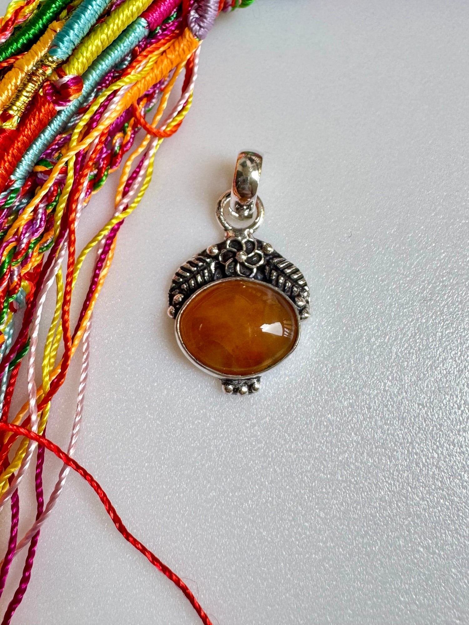 Ciondolo in ottone placcato argento con inserto di Agata.