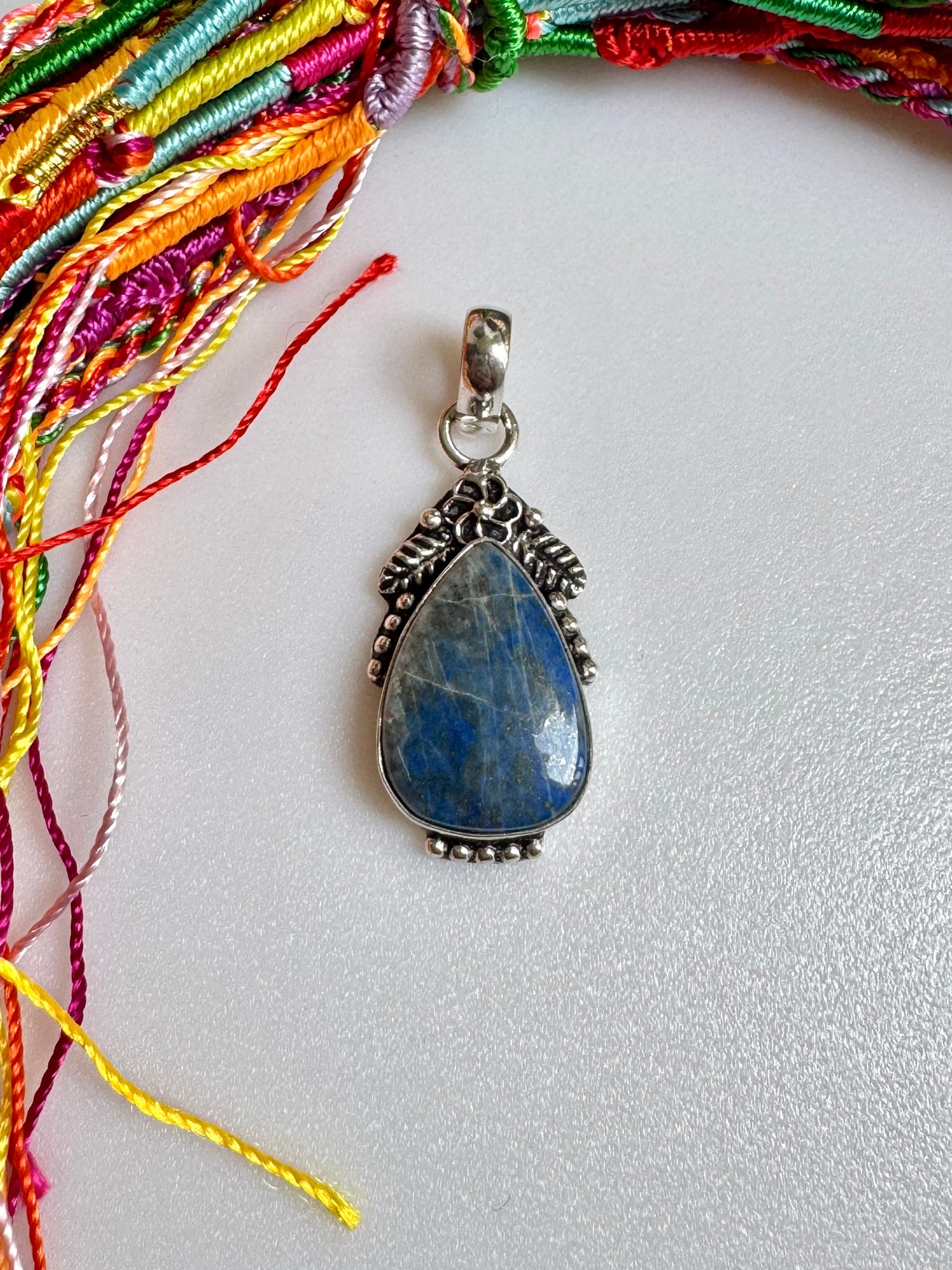 Ciondolo in ottone placcato argento con inserto in lapislazzuli.