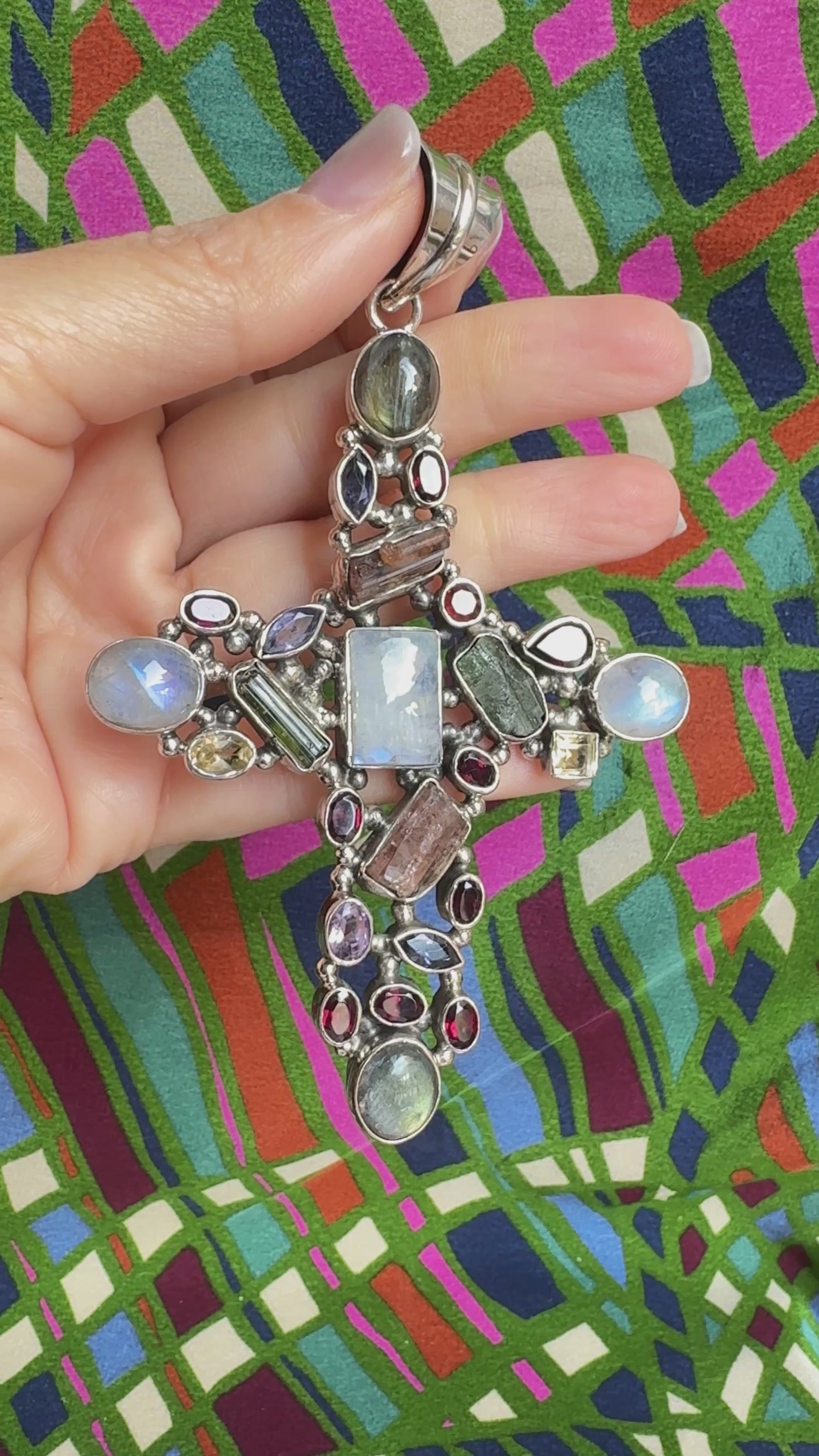 925 silver pendant set with various stones: labradorite, rainbow moonstone, amethyst, garnet, citrine, tourmaline.