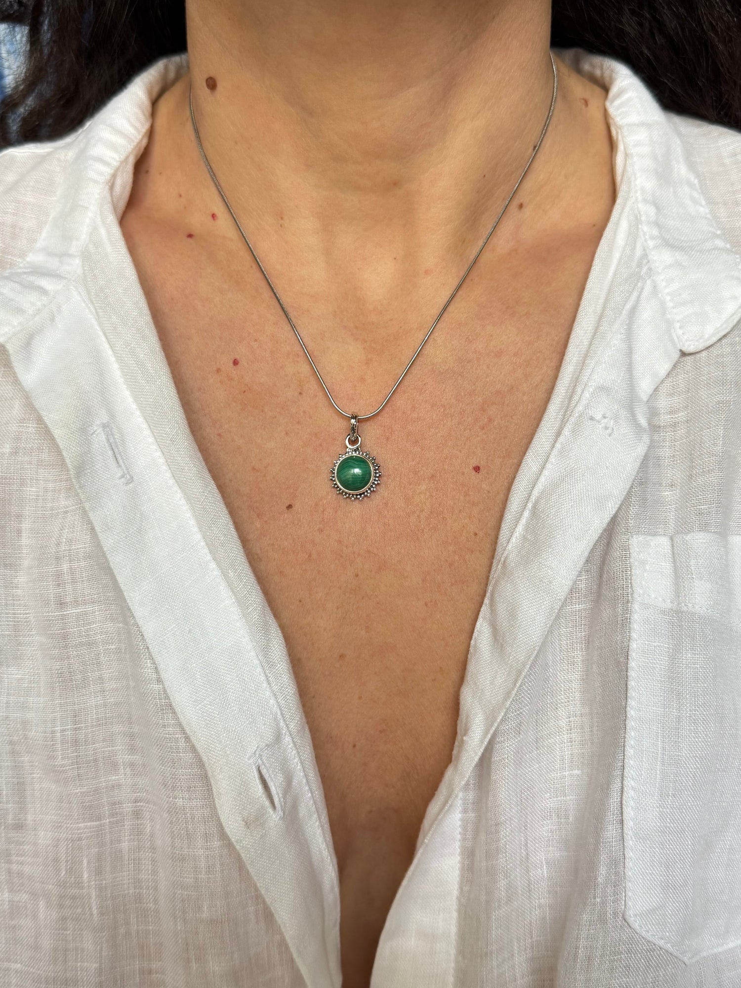 Ciondolo in argento 925 con malachite.