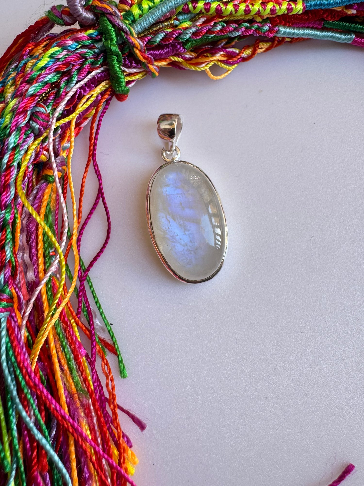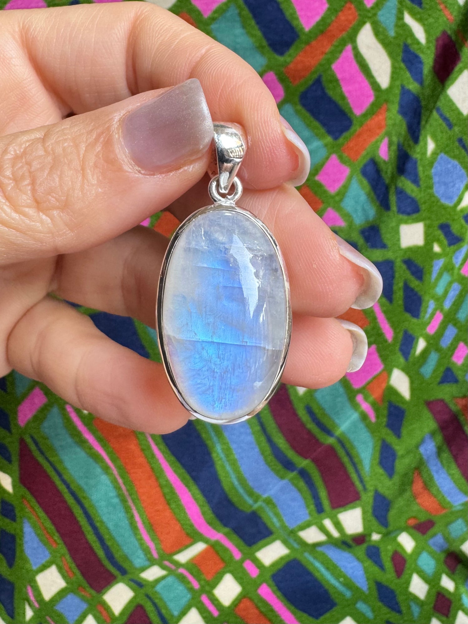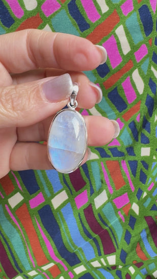 925 silver pendant set with a rainbow moonstone.