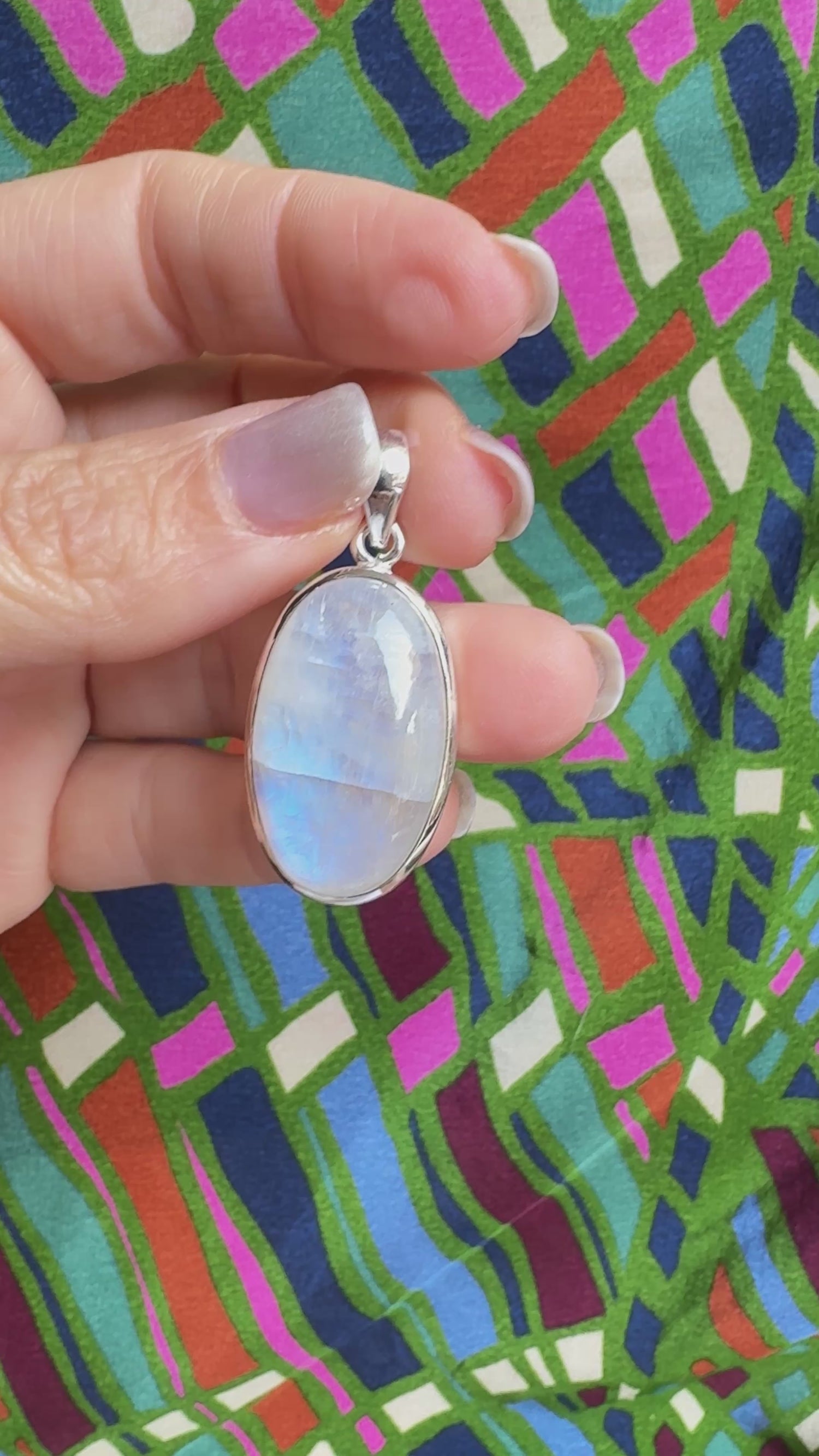 925 Silver Rainbow Moonstone Pendant 17L