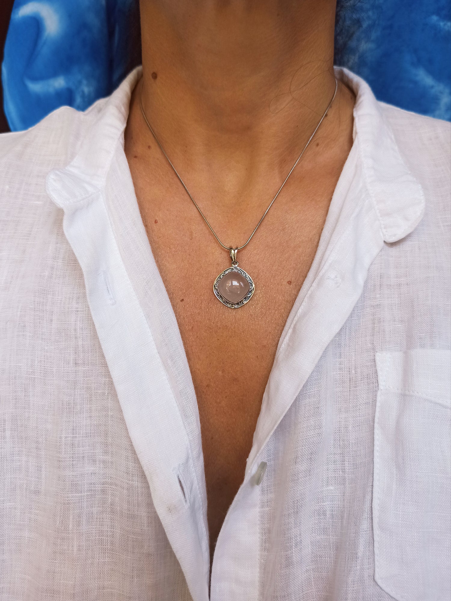 Rose Quartz is a symbol of love and beauty . This mineral stimulates the imagination and intellect, opening the heart to inner peace, self-love, and self-esteem. It also encourages forgiveness, love, and friendship.