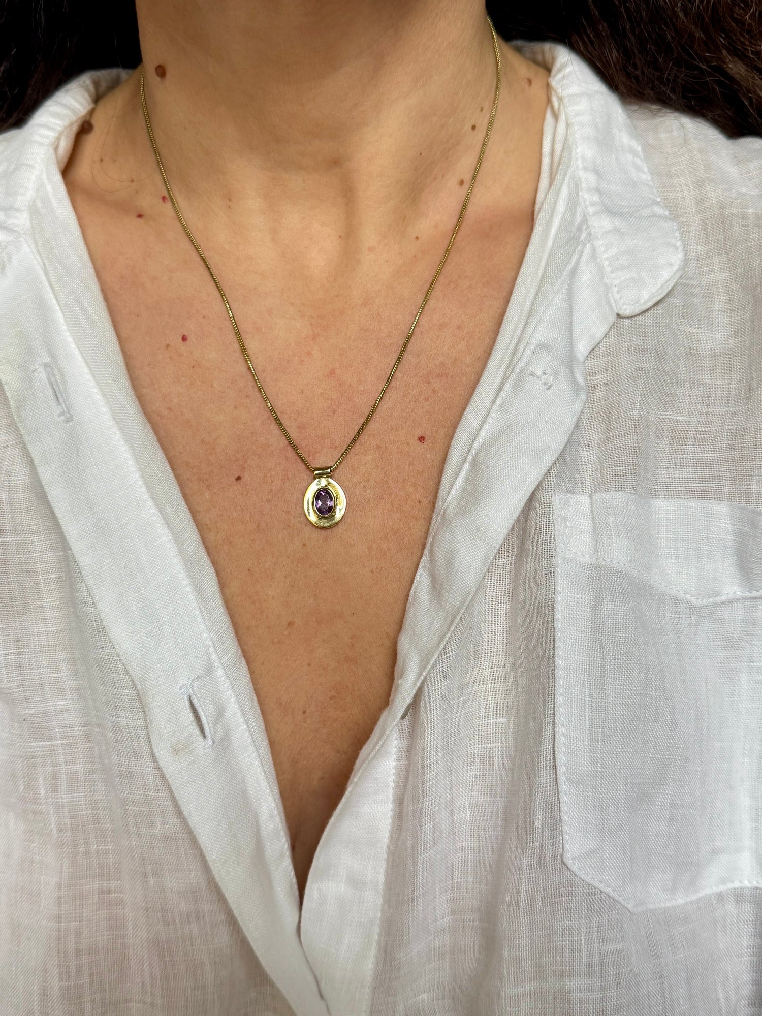 Catenina con ciondolo in ottone con inserto in simil ametista.