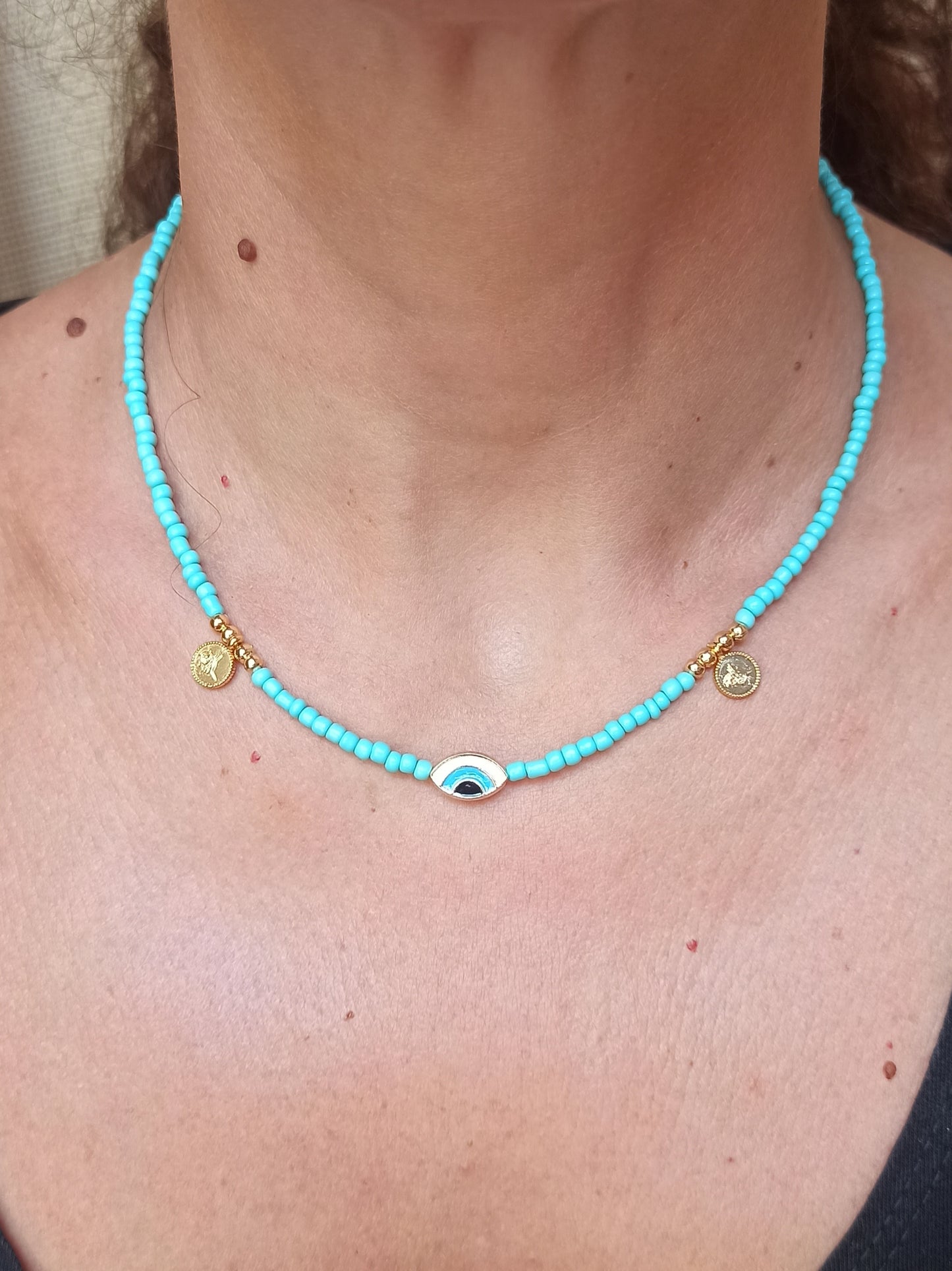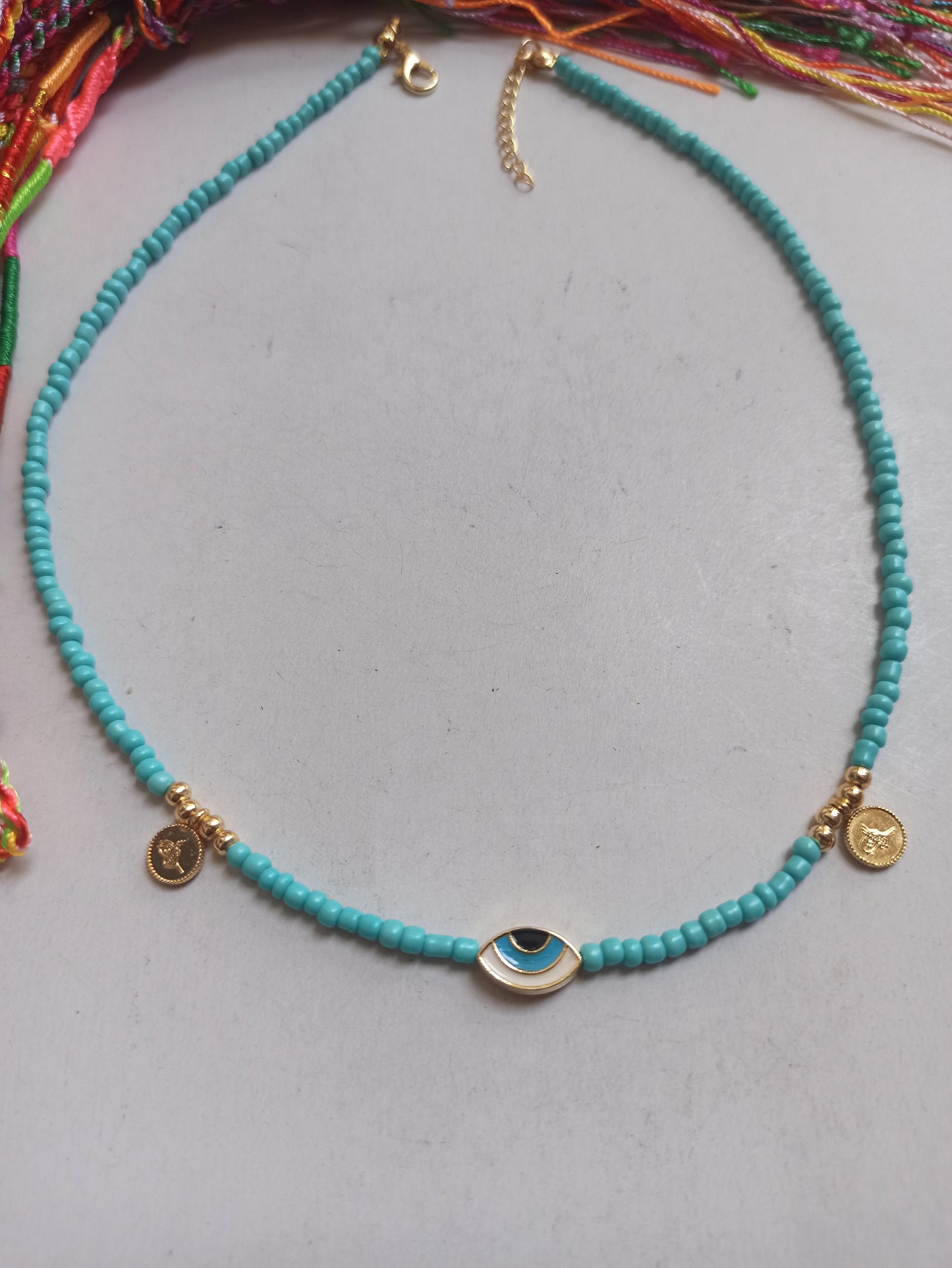 Thin turquoise eye necklace