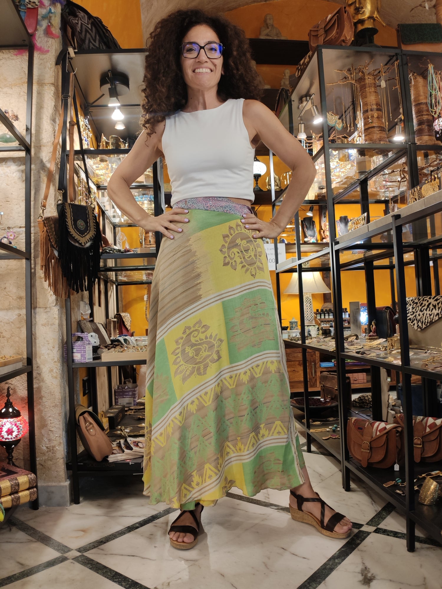Gypsy style wrap skirt handmade with vintage sari fabrics.