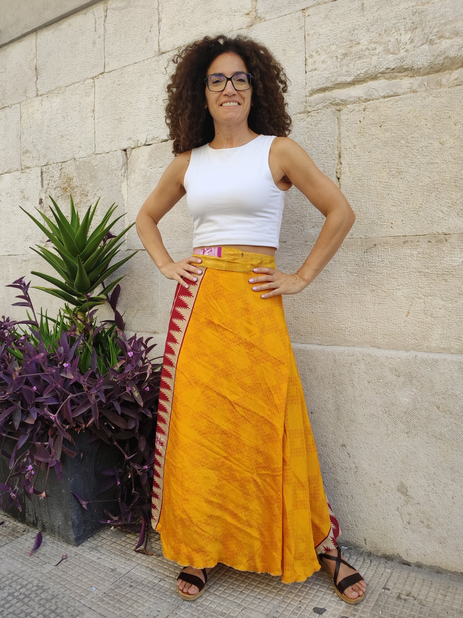 Gypsy style wrap skirt handmade with vintage sari fabrics.