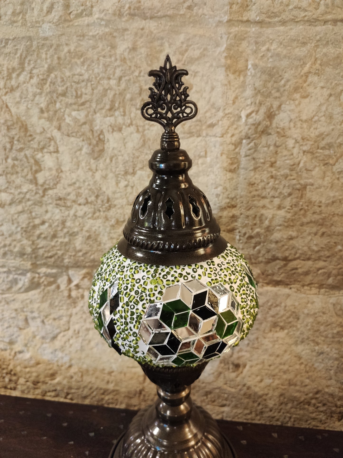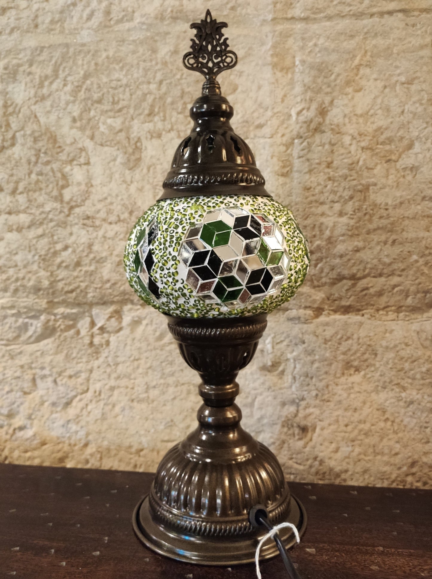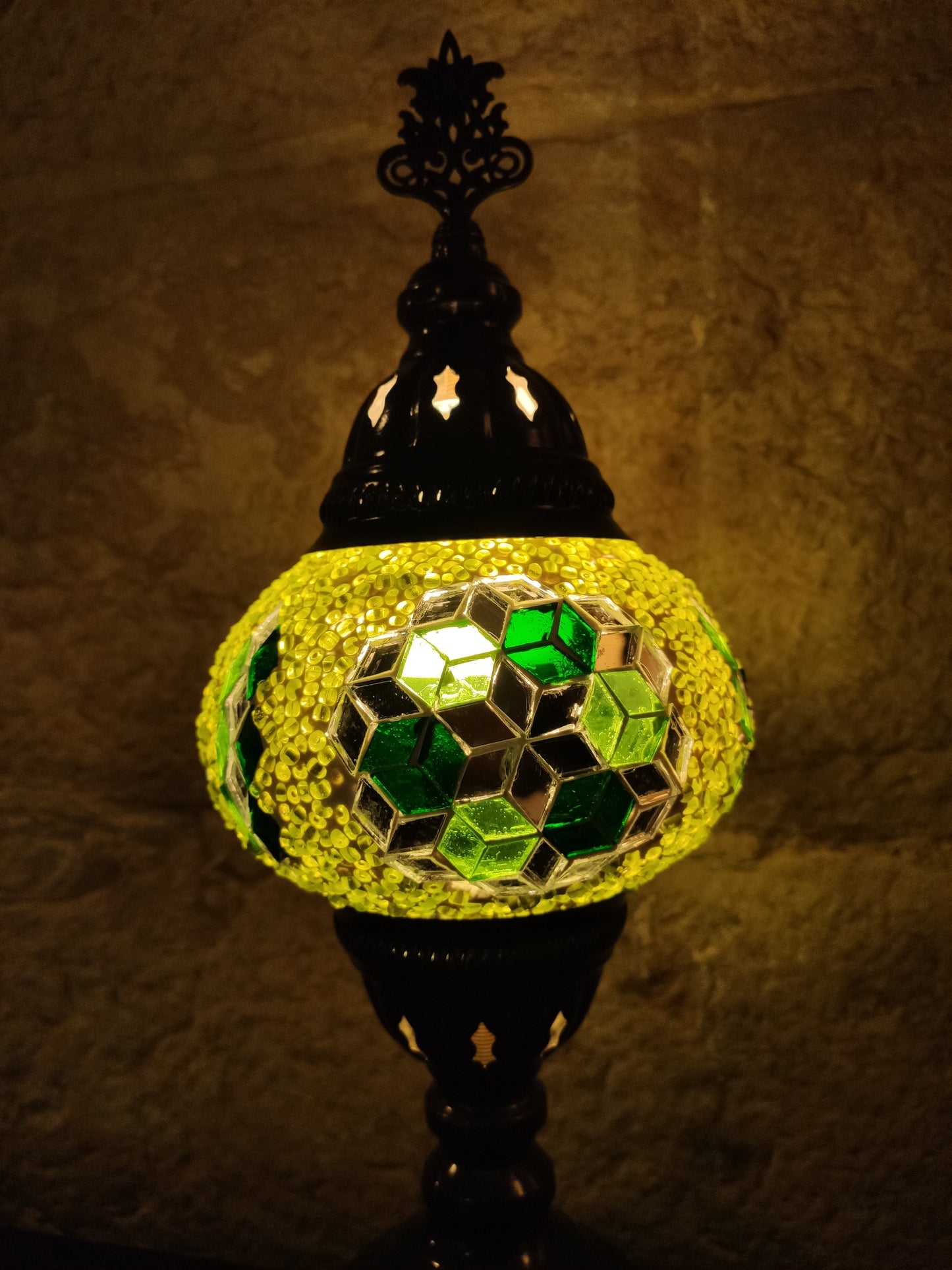 Turkish mosaic glass lamp, yellow green ethnic decor 29B