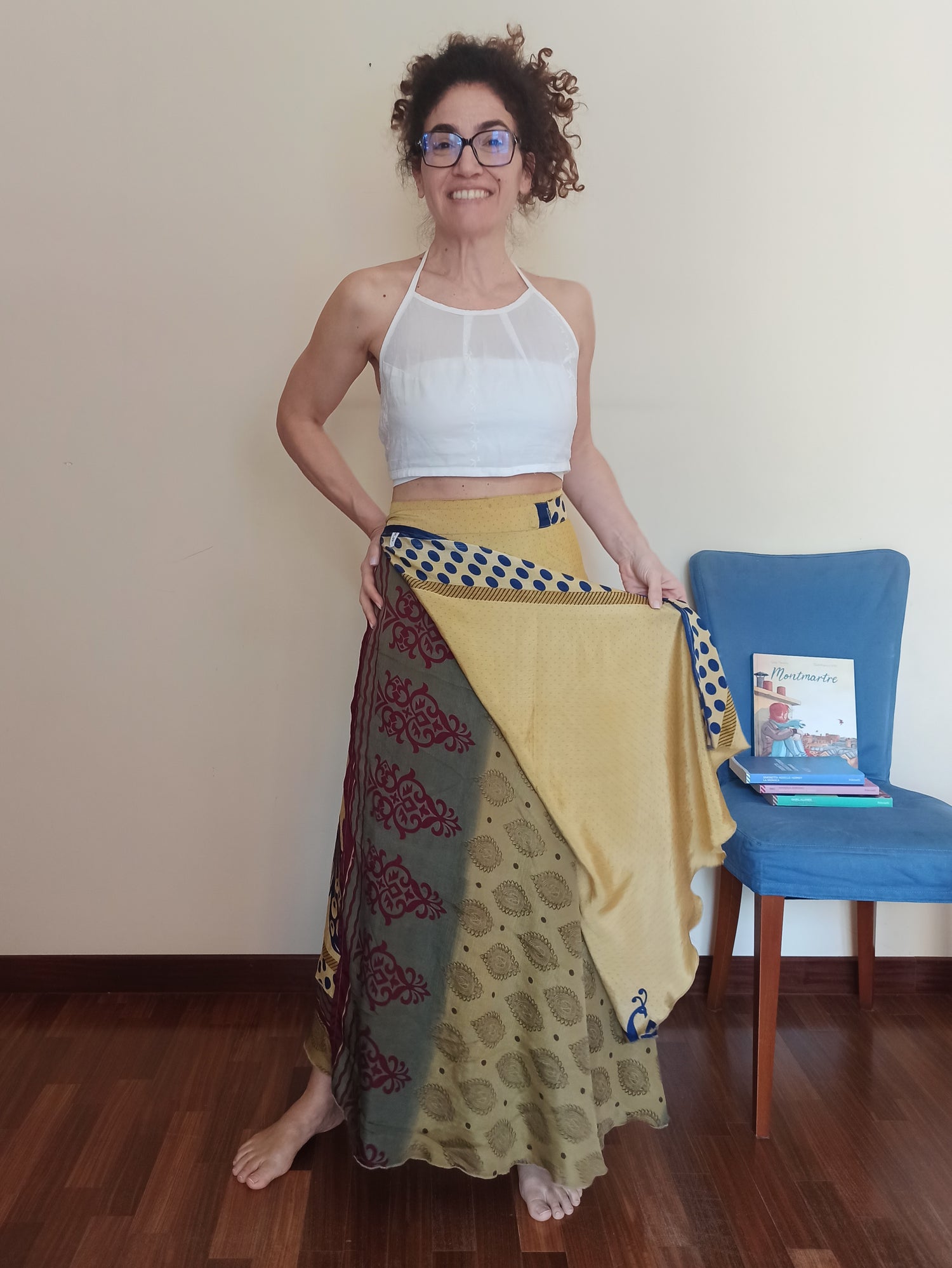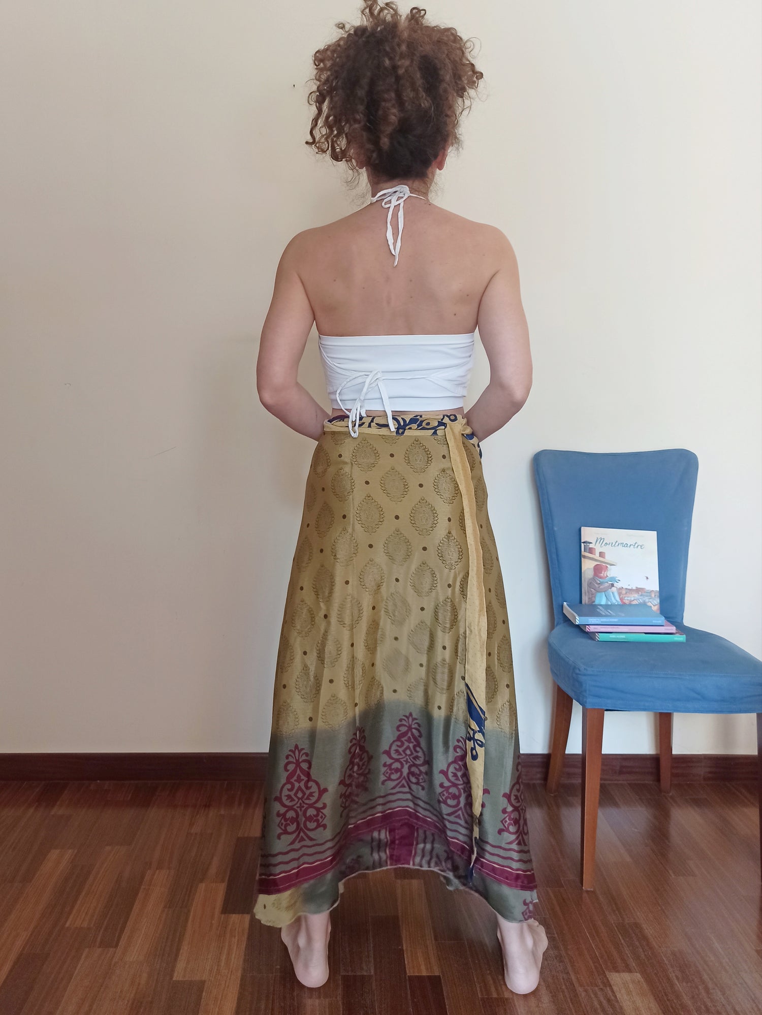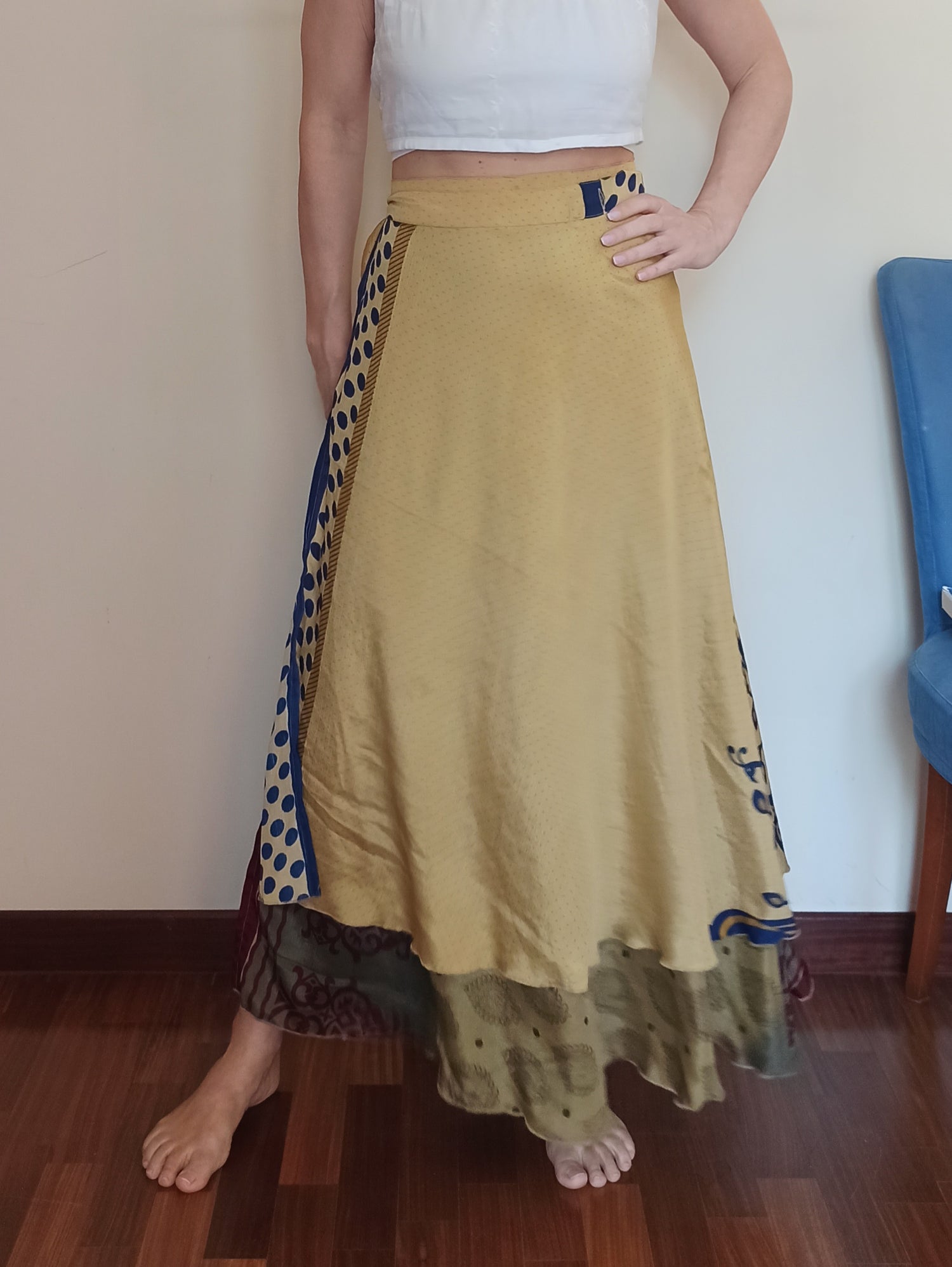 Gypsy style wrap skirt handmade with vintage sari fabrics.