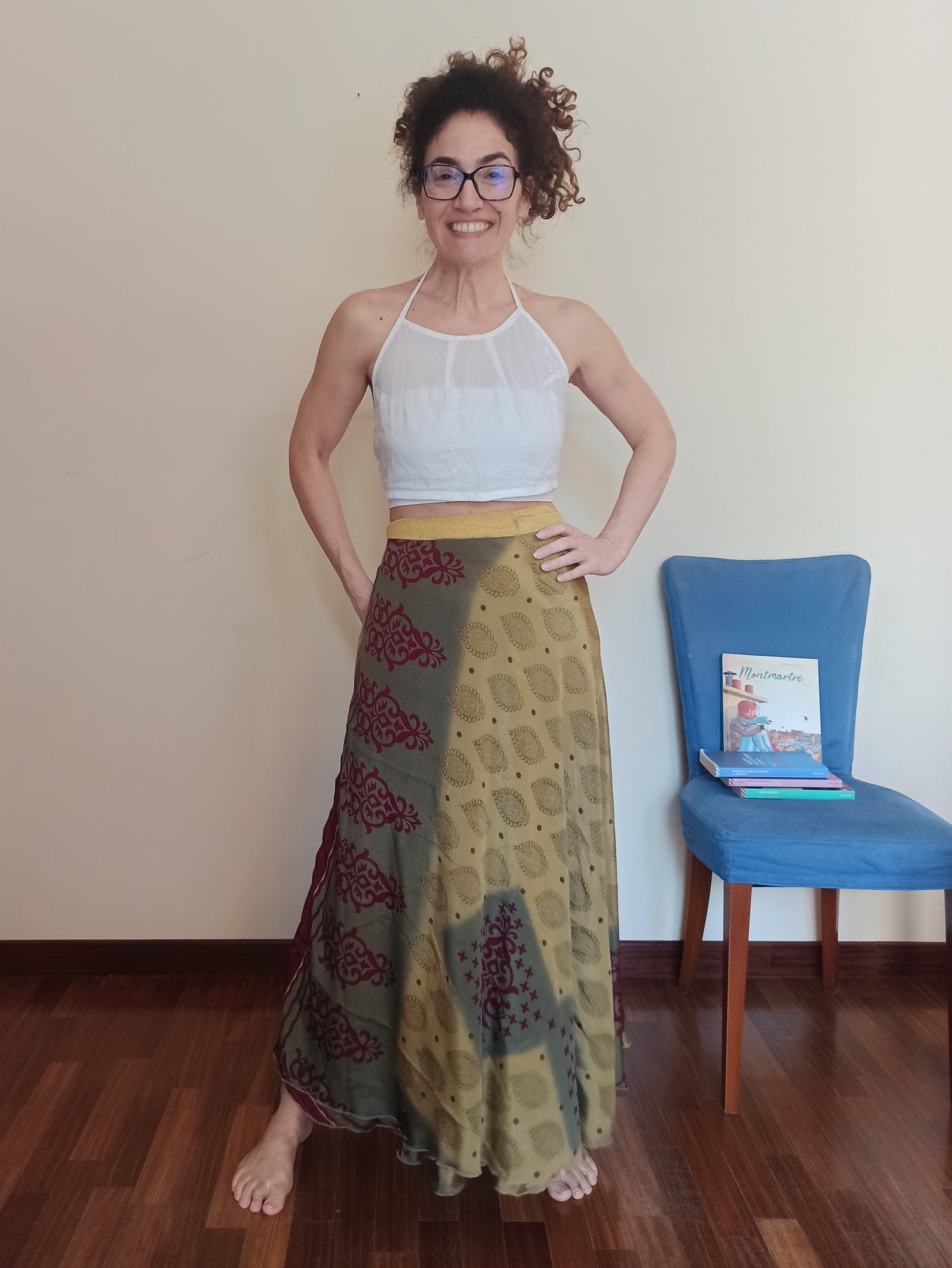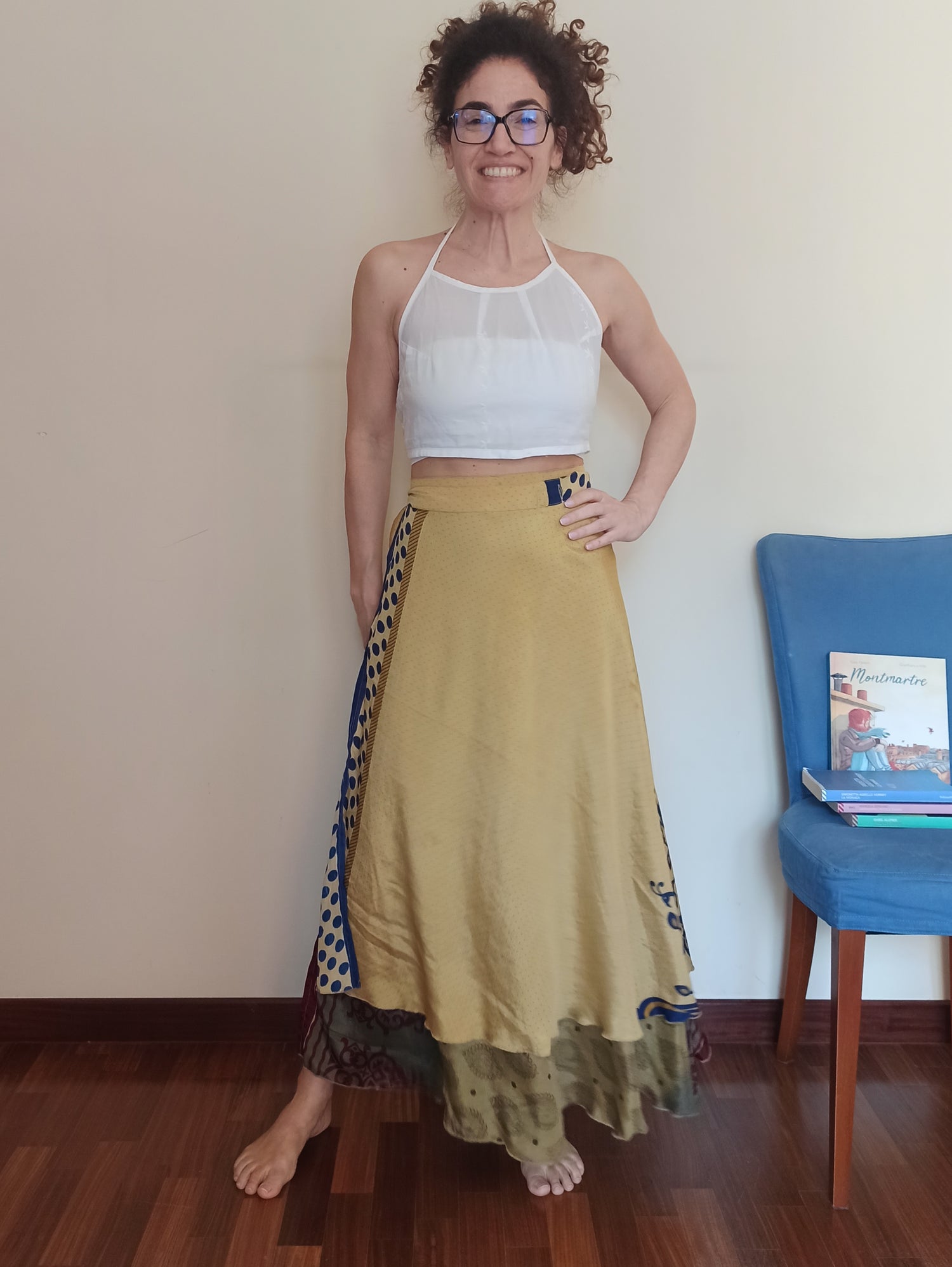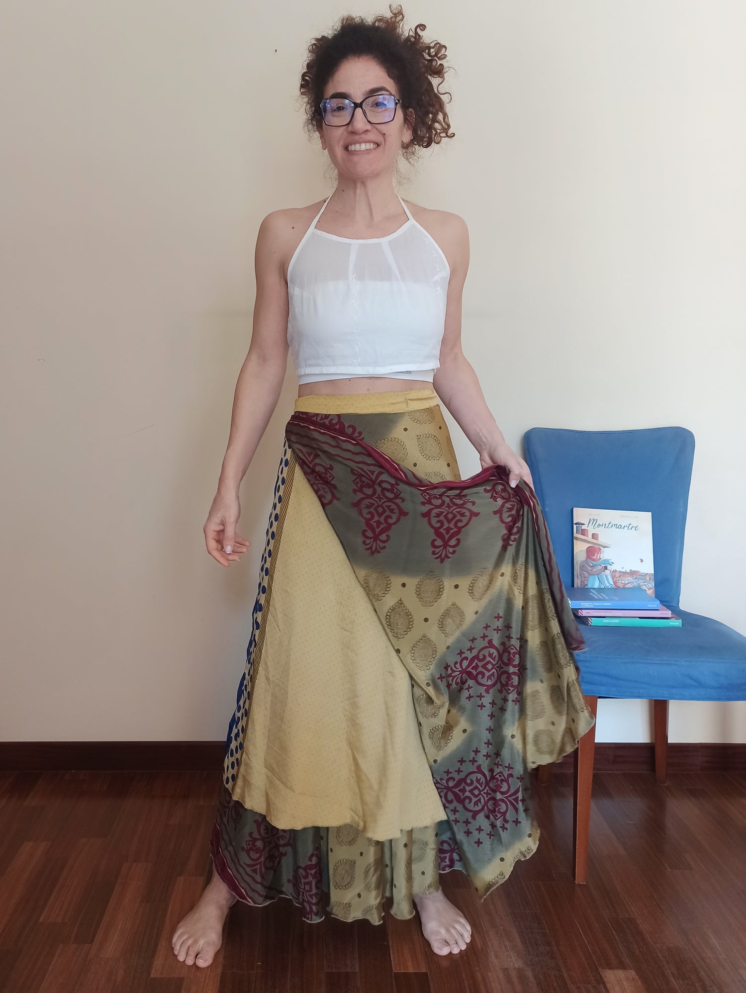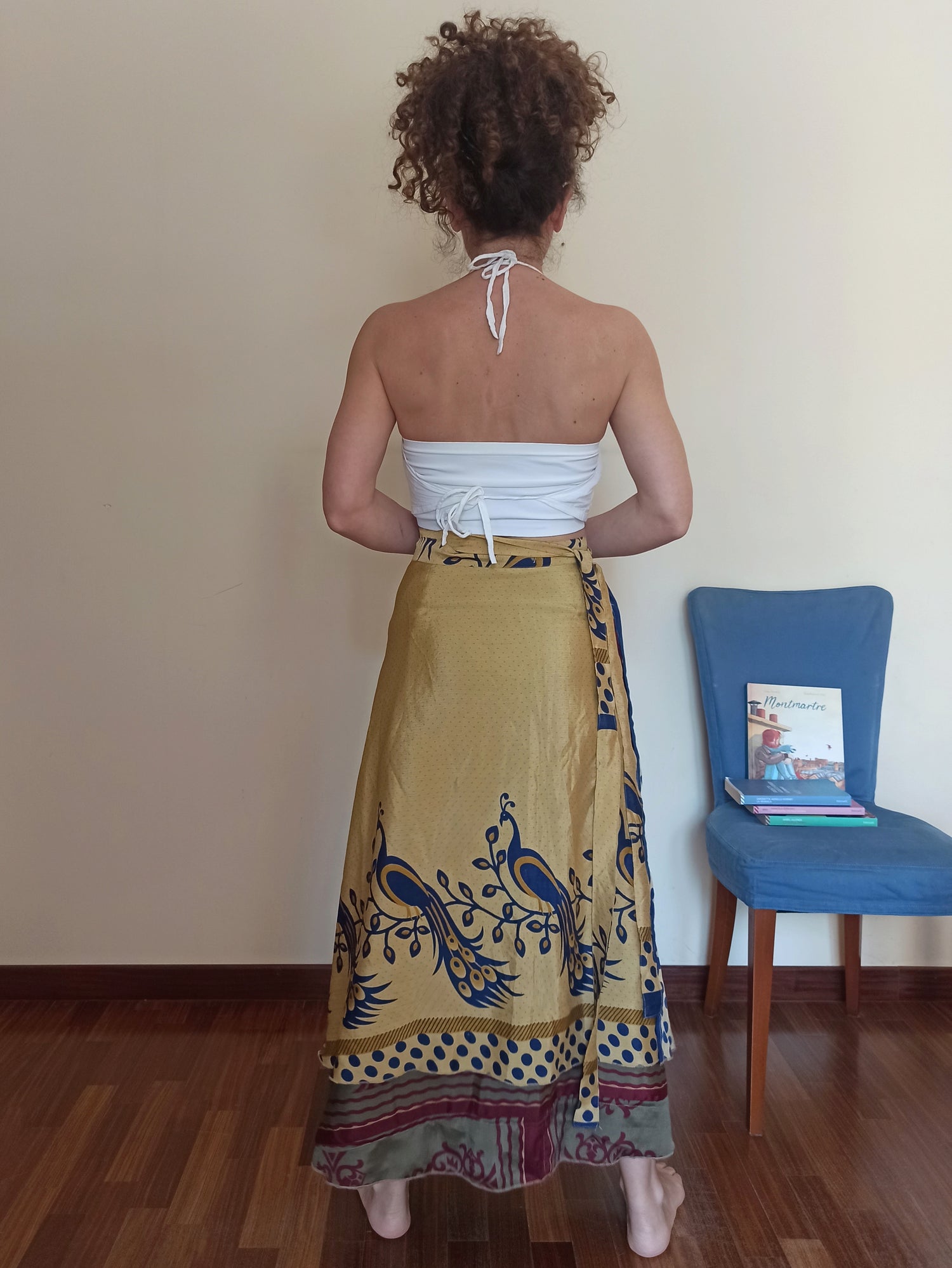 Gypsy style wrap skirt handmade with vintage sari fabrics.