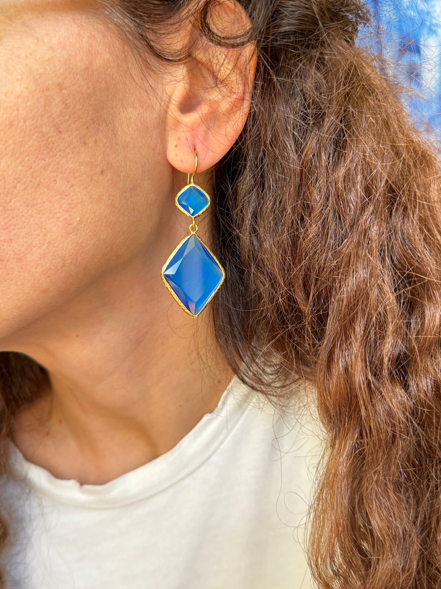 Hypoallergenic brass earrings with cat's eye stone. Nickel free. Length 7cm.