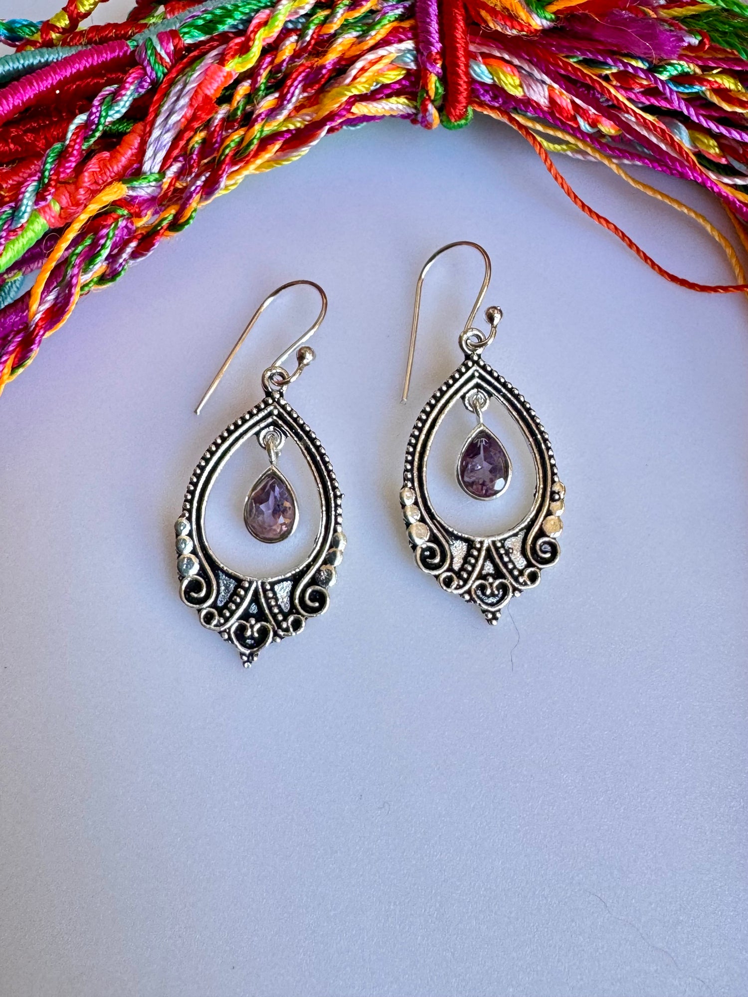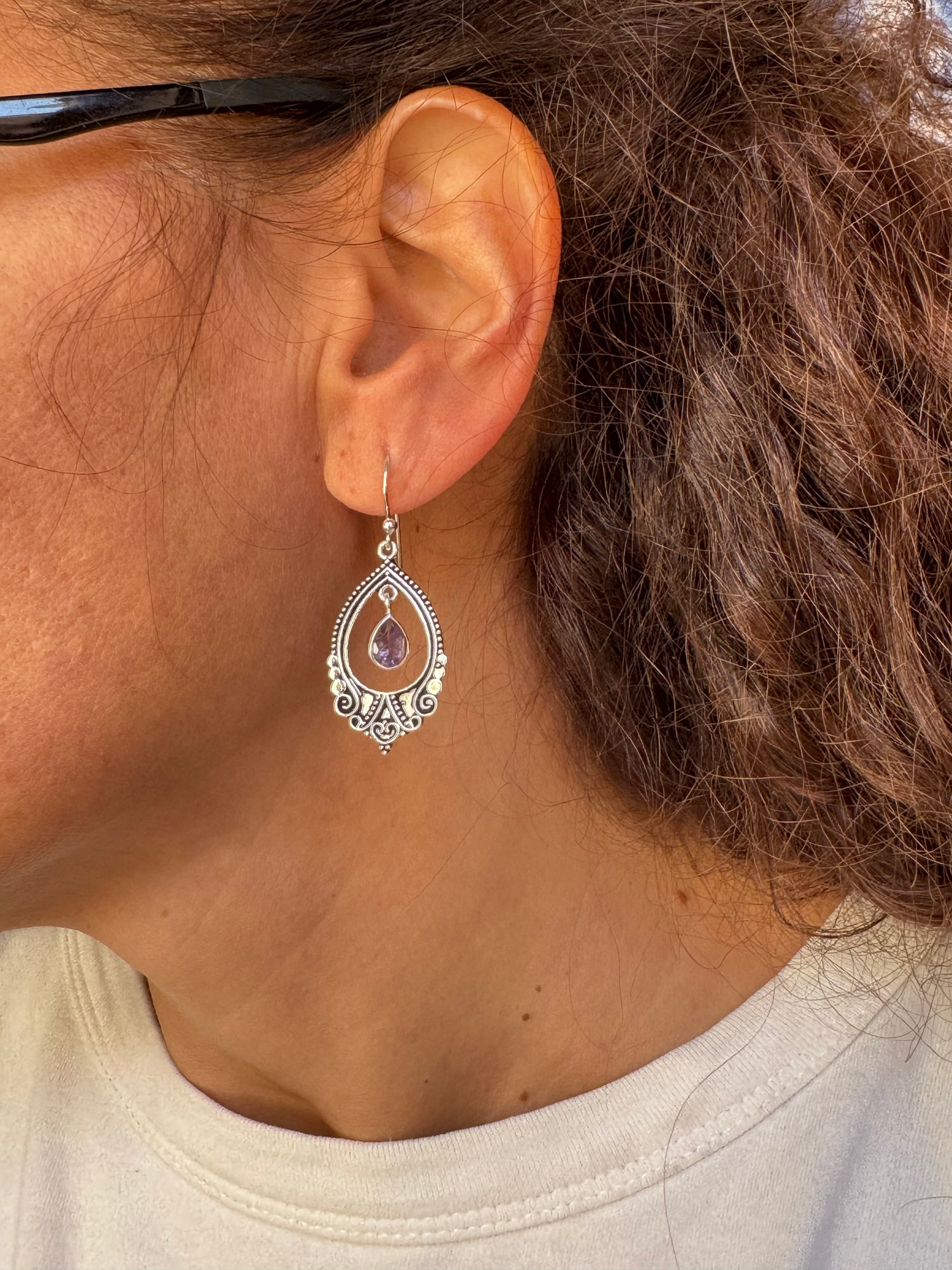 Orecchini in argento 925 con una pietra ametista.
