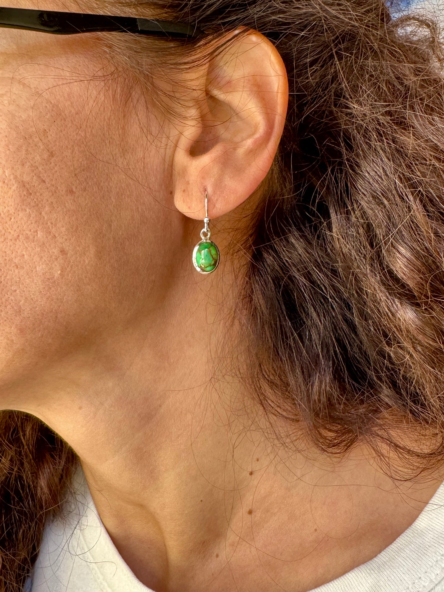 Orecchini in argento 925 con una pietra di Copper turquoise.