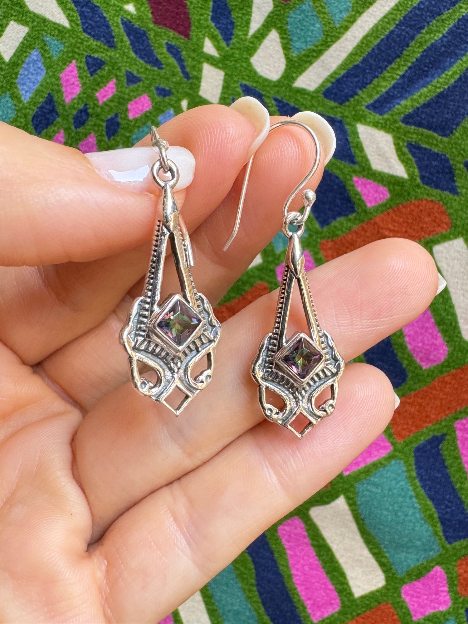 925 mystic stone silver earrings