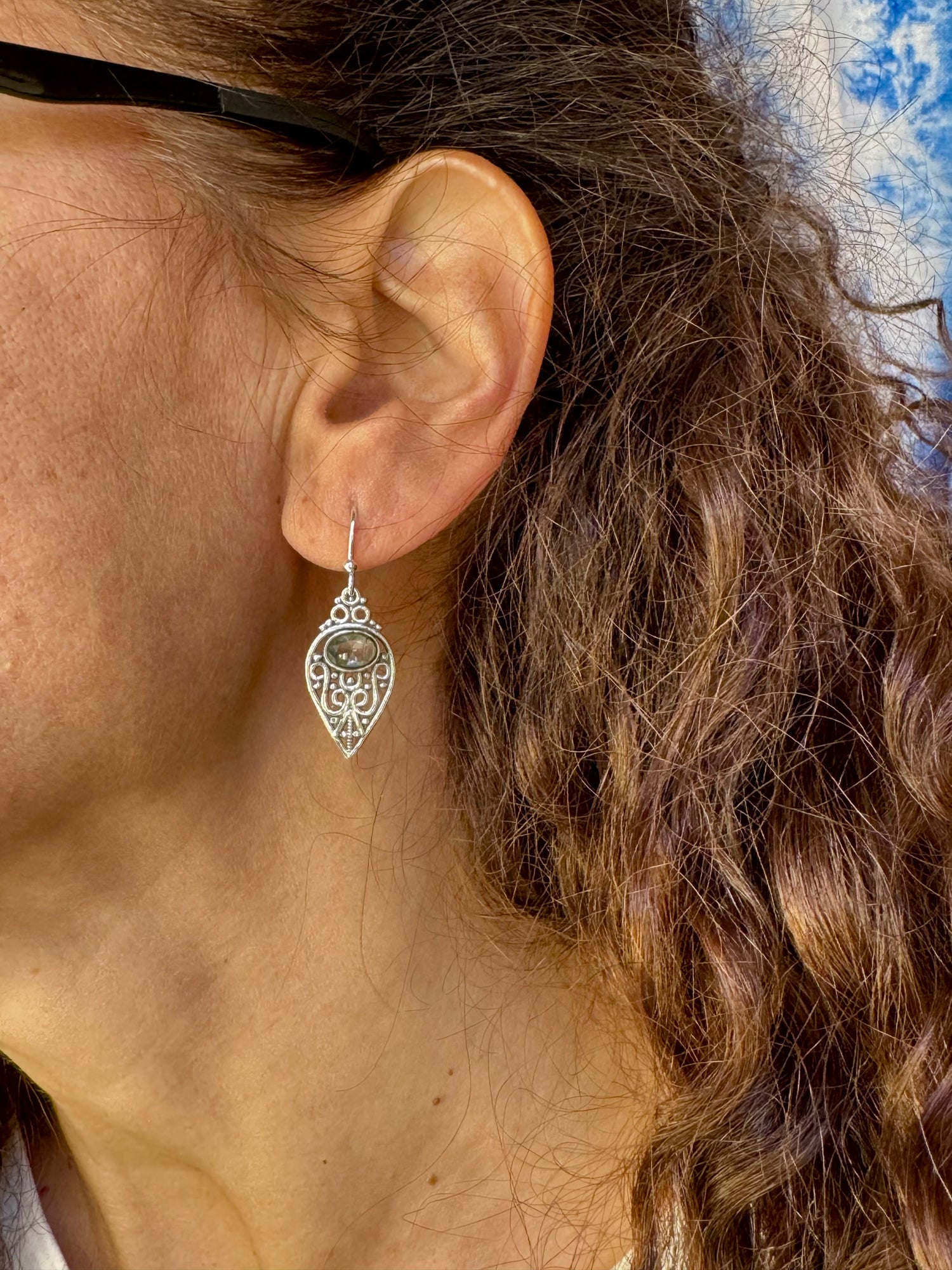 925 silver earrings with a set aquamarine stone. Length: 3.5 cm.