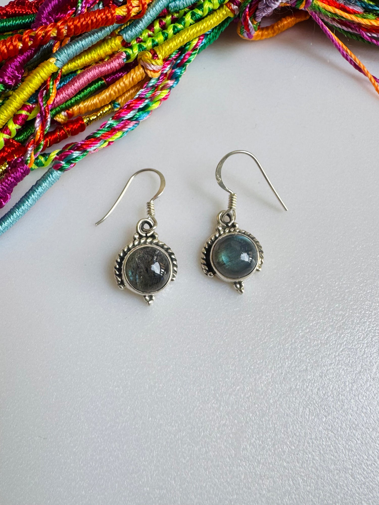 925 silver earrings with a labradorite stone. Length approximately 5 cm including the hook.
