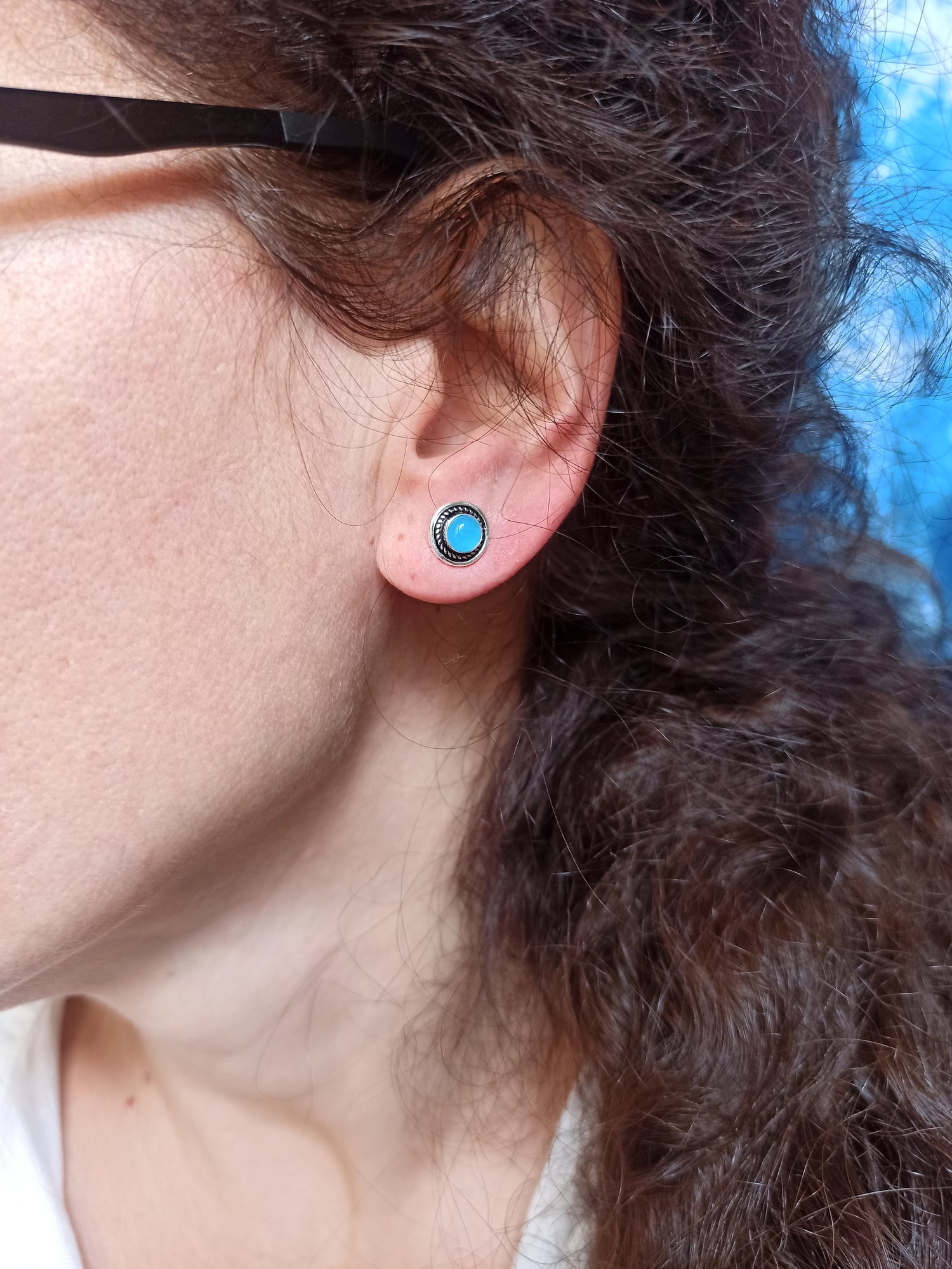 Boho style earrings in hypoallergenic silver-plated brass with chalcedony-like insert.