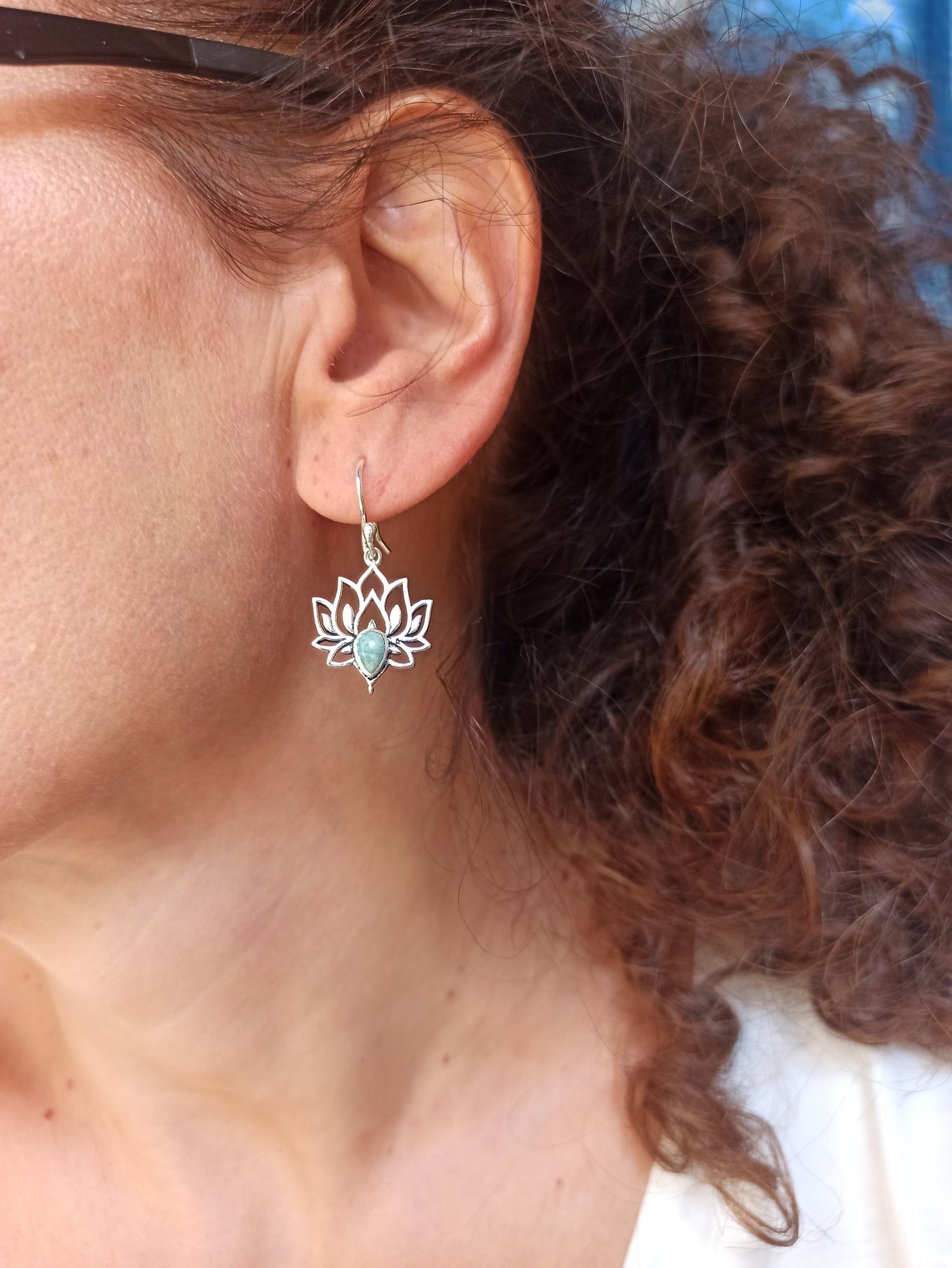 Boho-style earrings in hypoallergenic silver-plated brass with an amazonite-like insert.