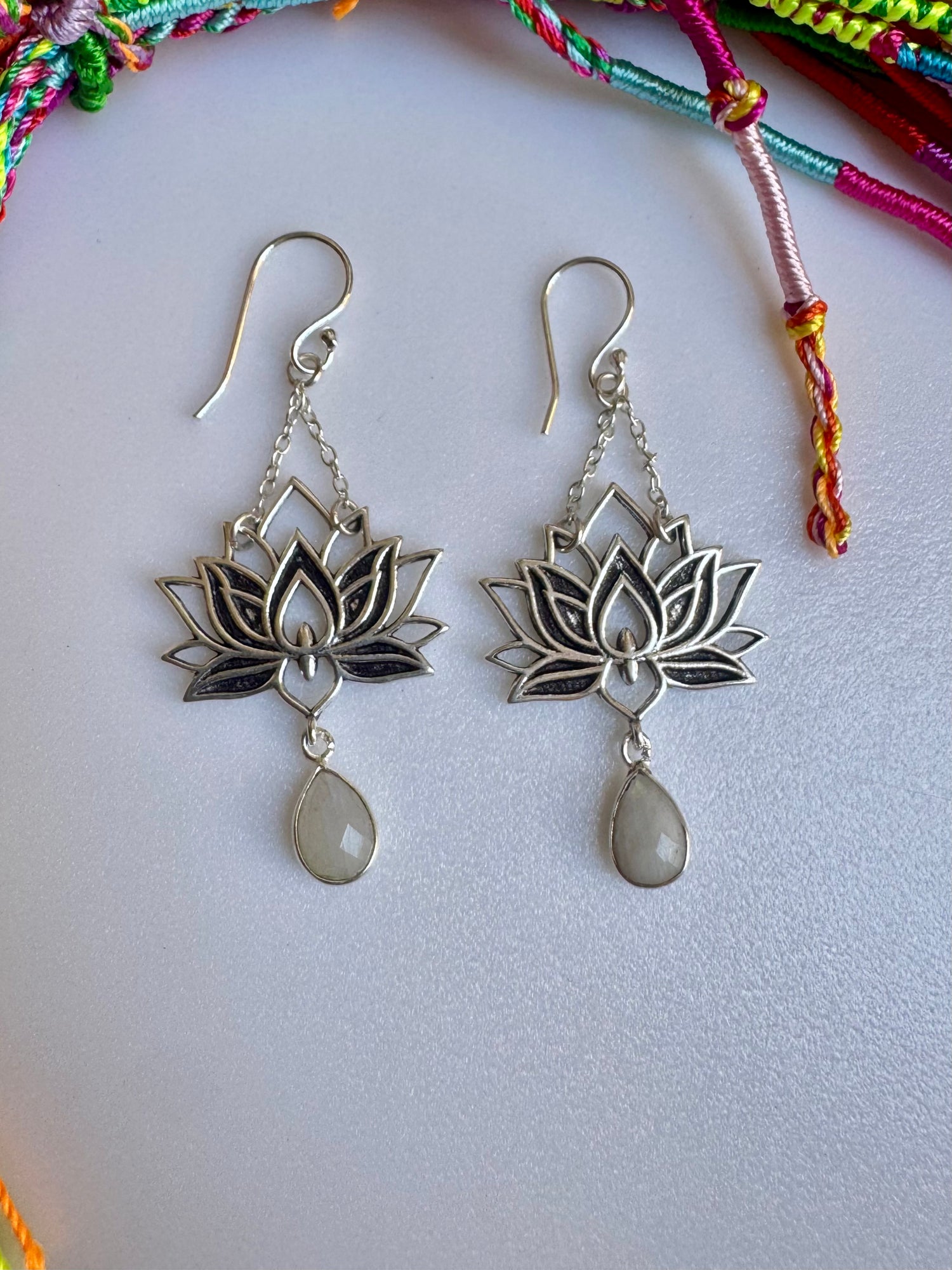 Silver moonstone boho earrings