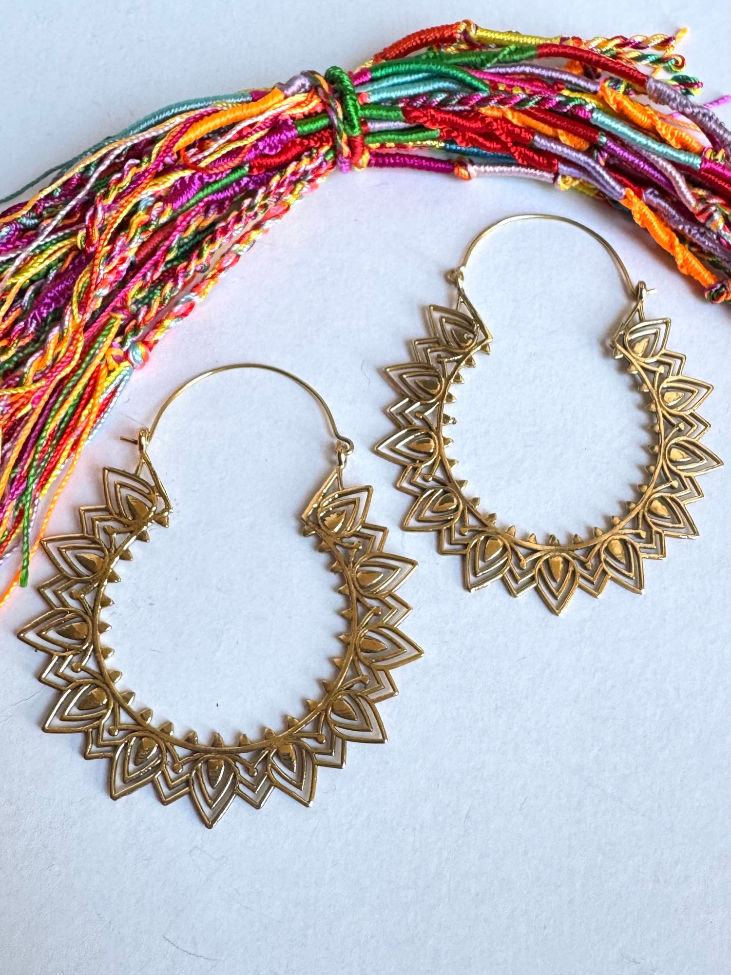 Orecchini boho dorati cerchi fiammelle