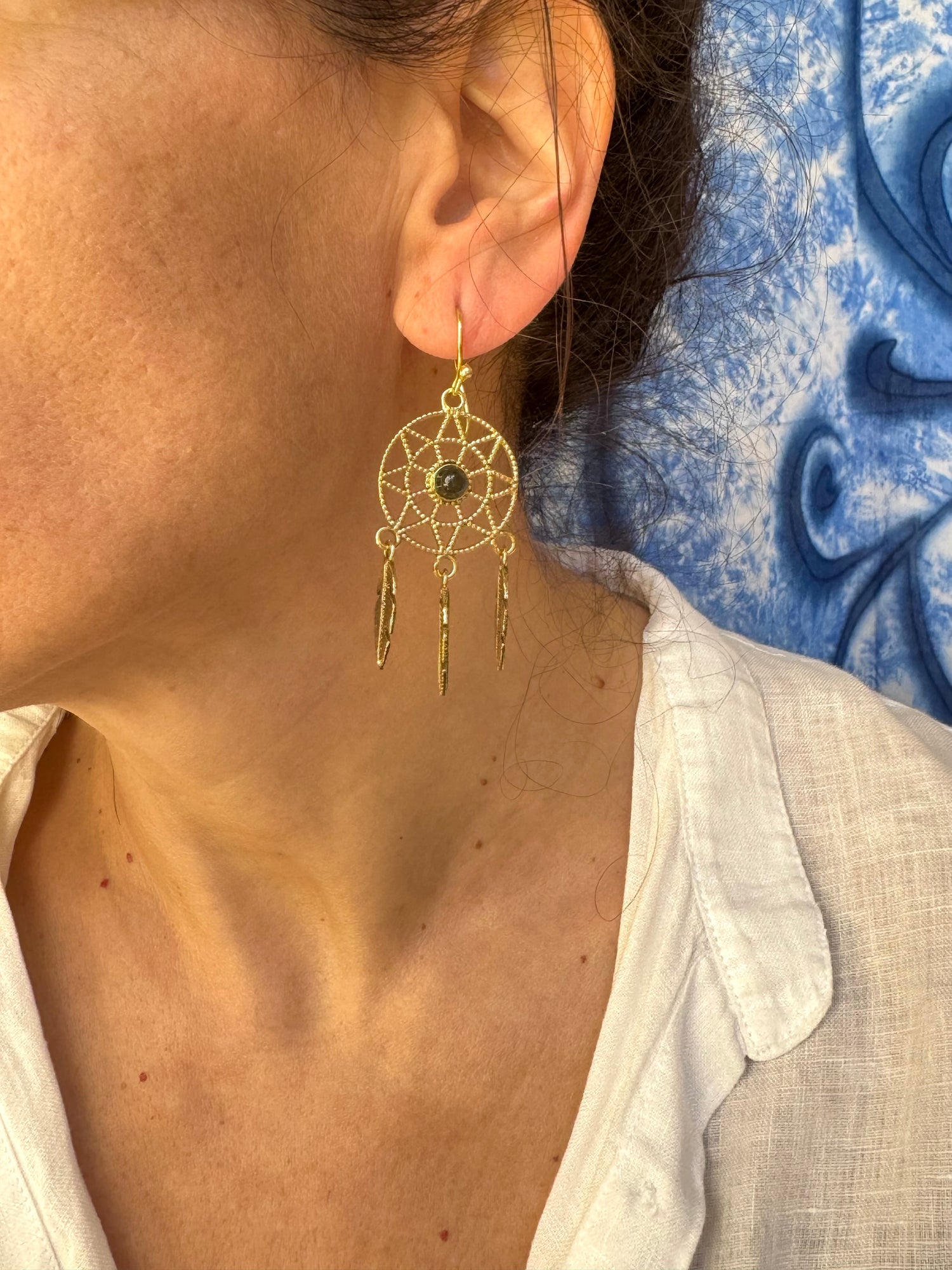 Orecchini boho dorato acchiappasogni labradorite