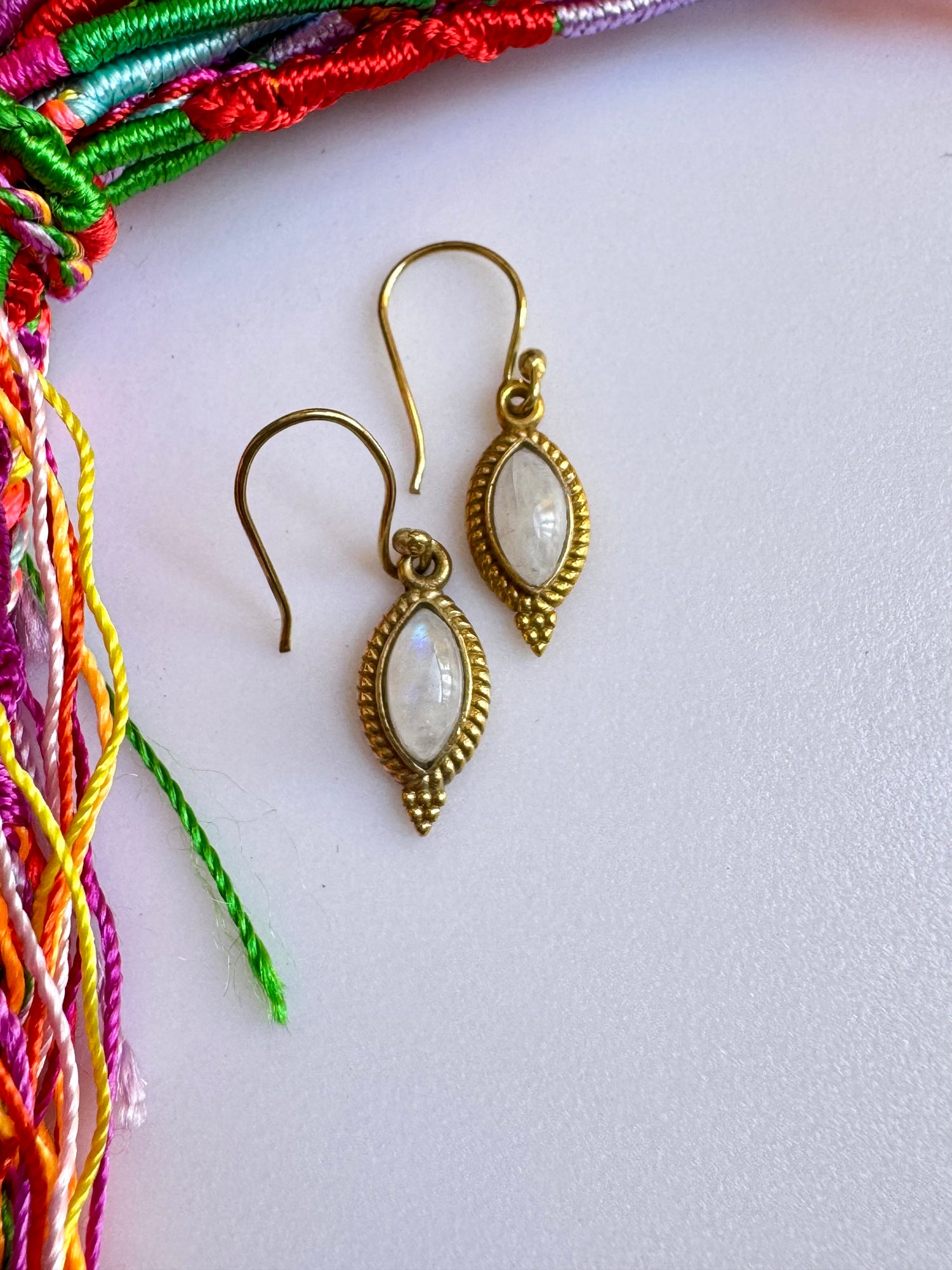 Orecchini in stile boho in ottone anallergico con inserto in pietra di luna.
