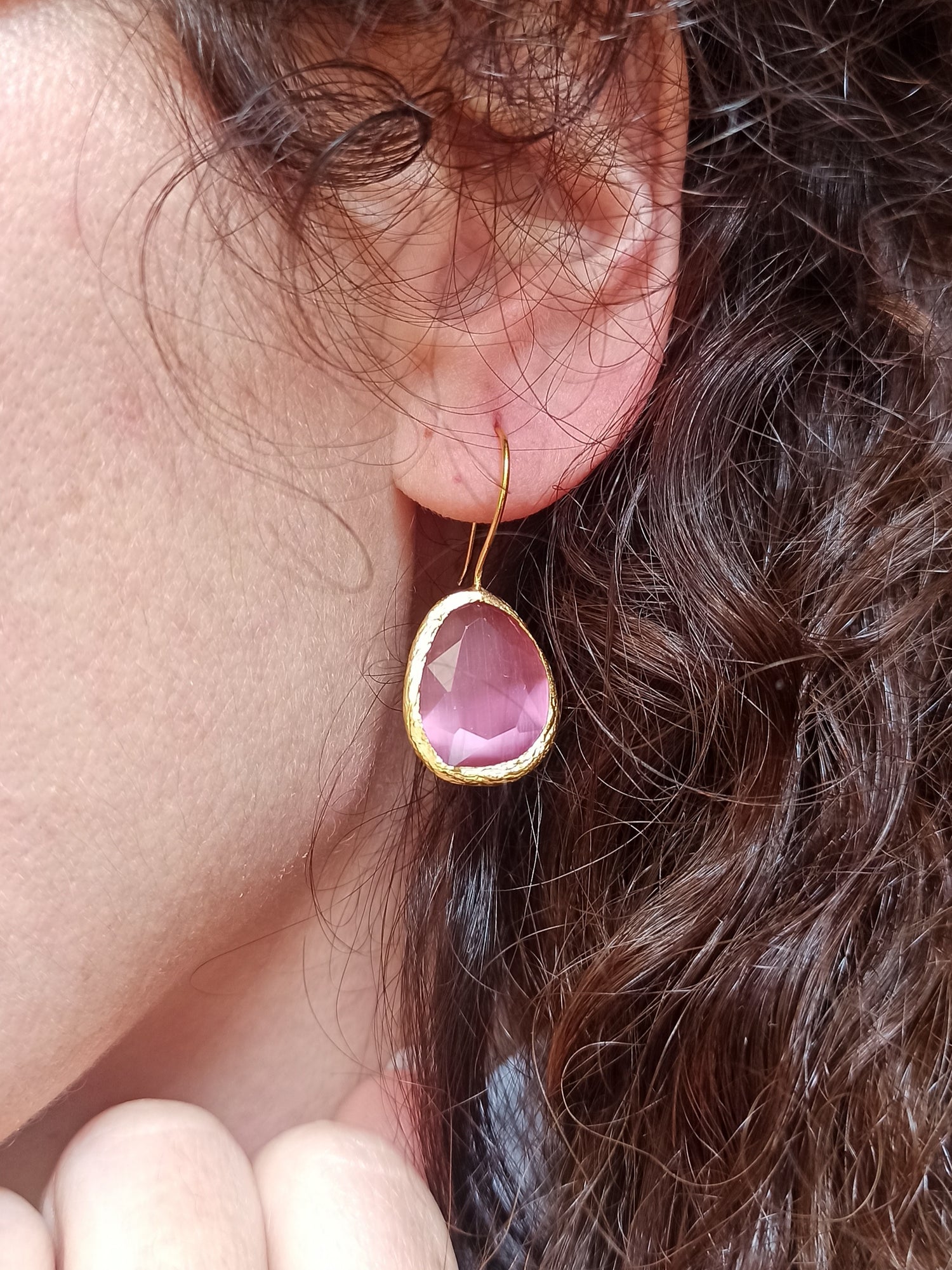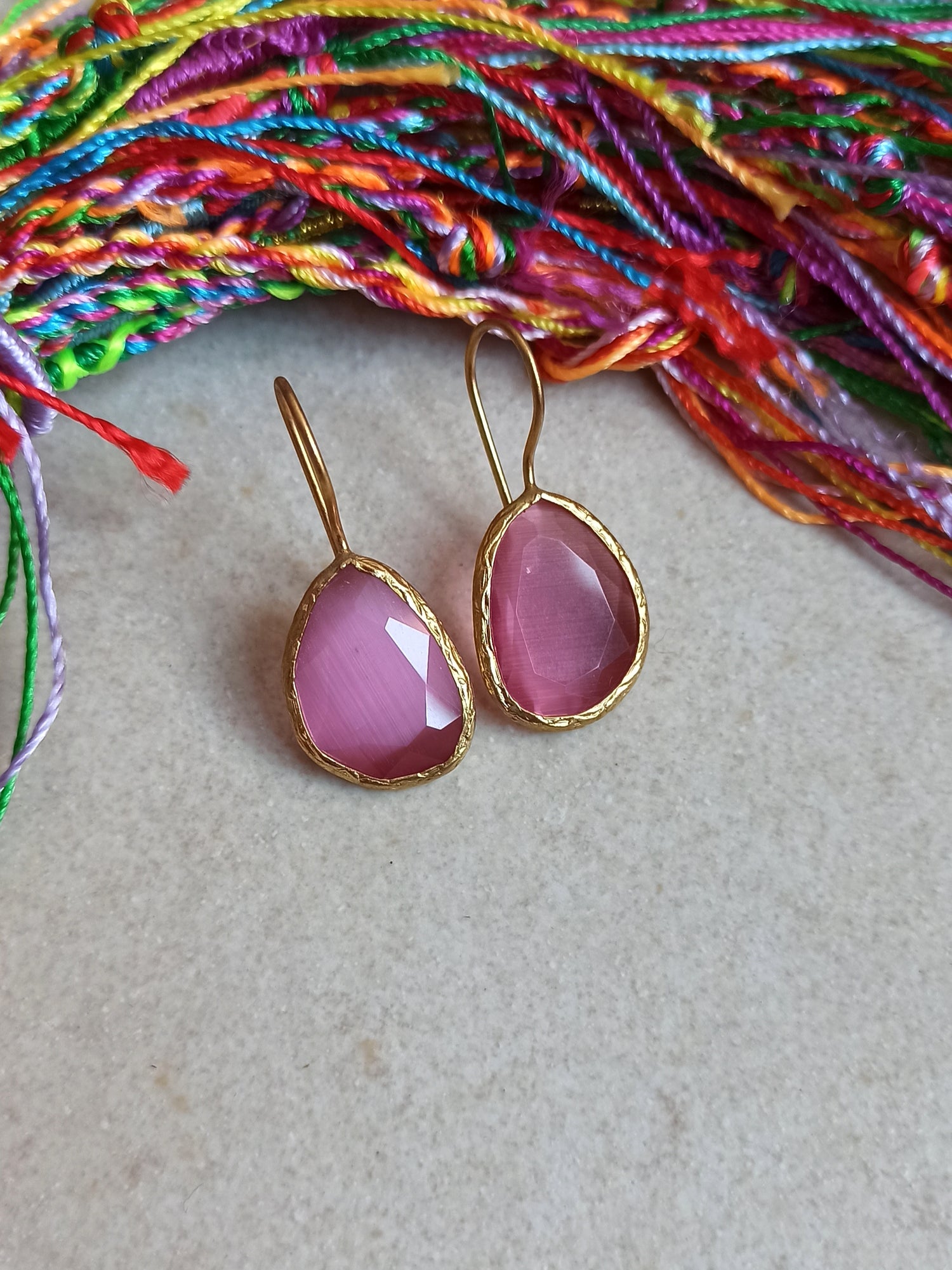 Pink medium drop stone earrings