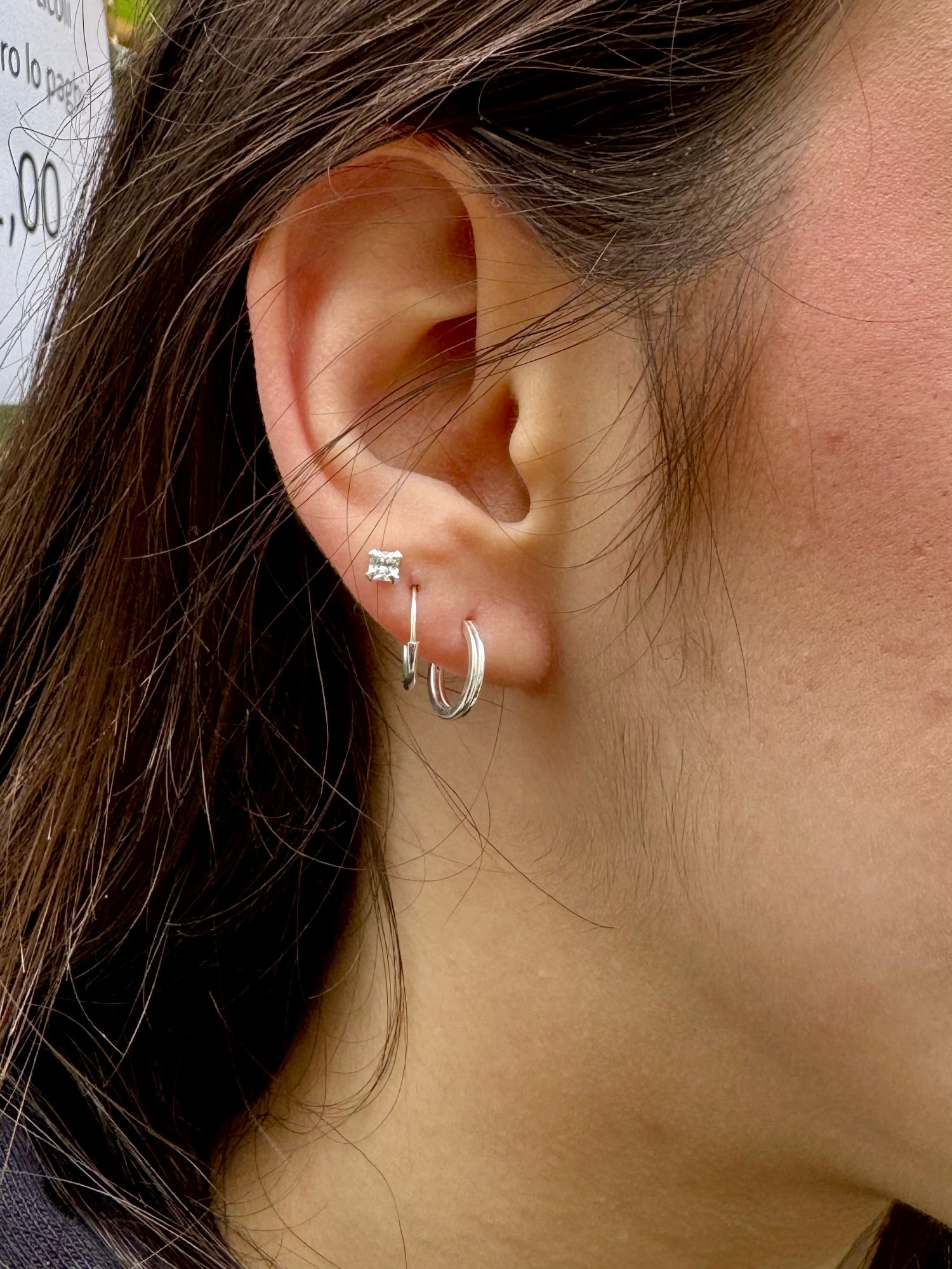 Single earring smooth circle square section cm 925 silver 1 cm W24