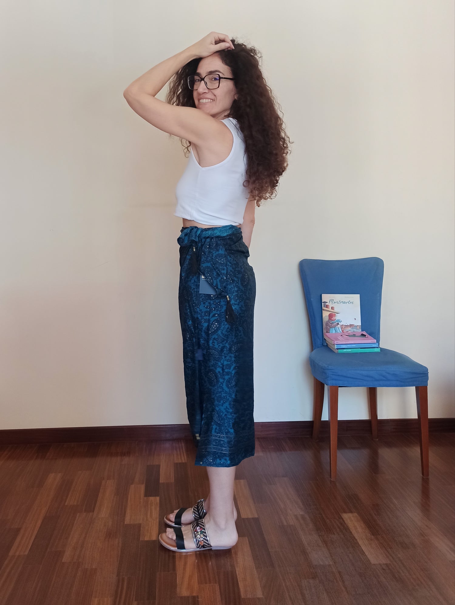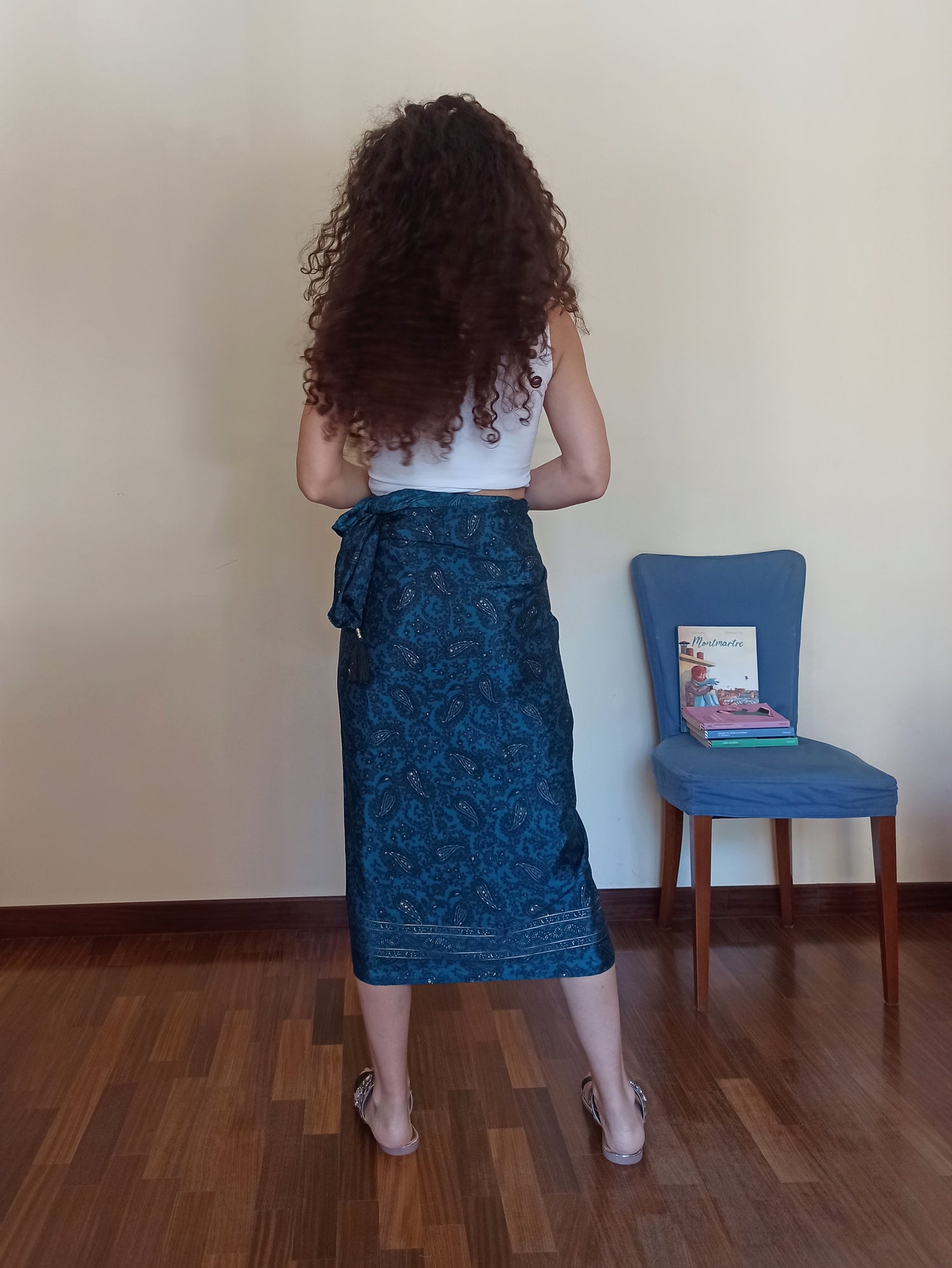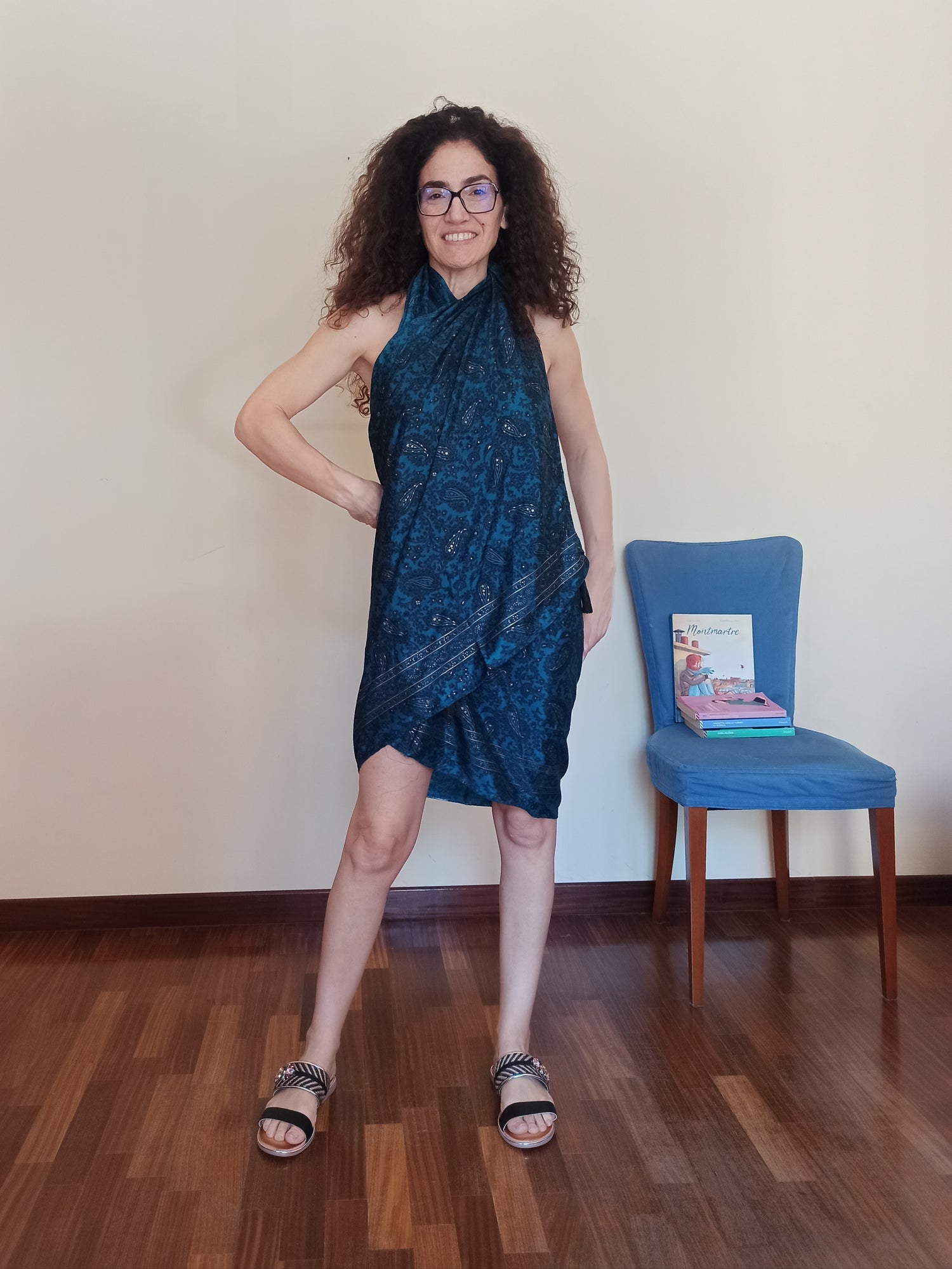 The four corners of the sarong are embellished with tassels, which add an ethnic-chic touch and make the garment dynamic and feminine.