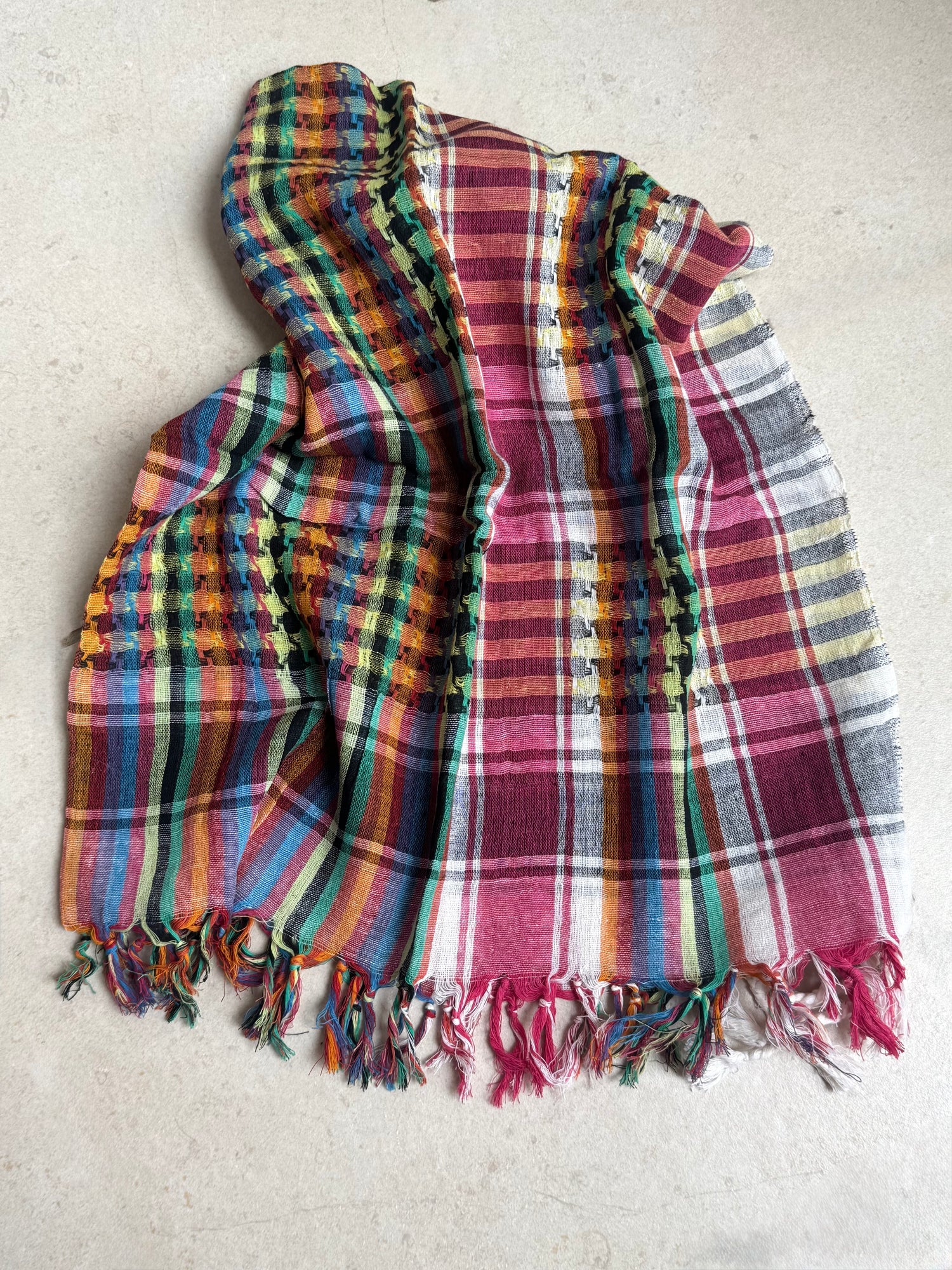 Luminosa e coloratissima questa bellissima sciarpa stile kefiah in poliestere. Misura cm 102x102 senza considerare le frange, perfetta per ogni occasione. Provala e aggiungi un tocco di classe al tuo outfit!