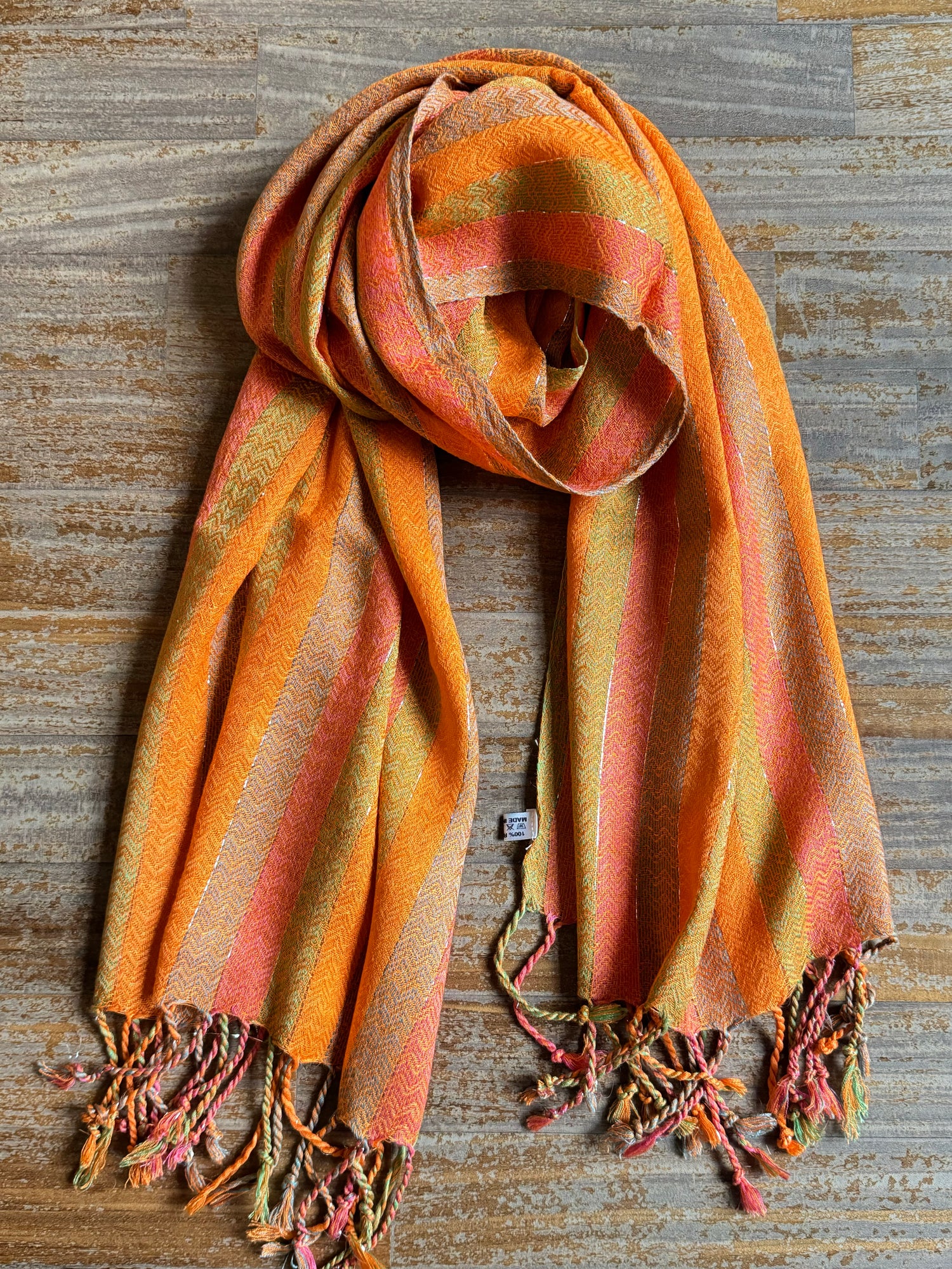 Bright and elegant this beautiful pashmina in 100% rayon illuminated by silver threads. Measures 184x50 cm without considering the fringes, perfect for any occasion. Try it and add a touch of class to your outfit!