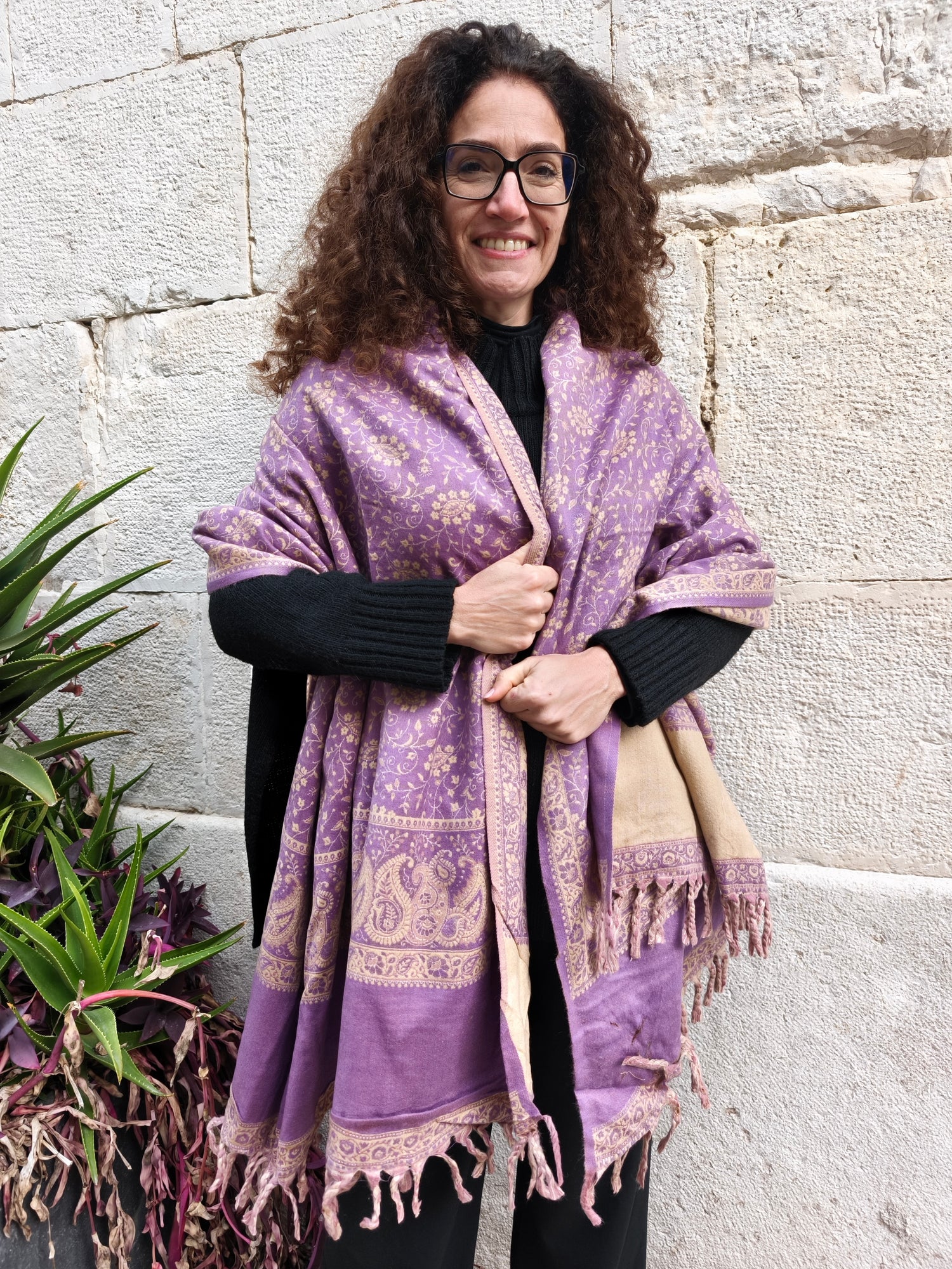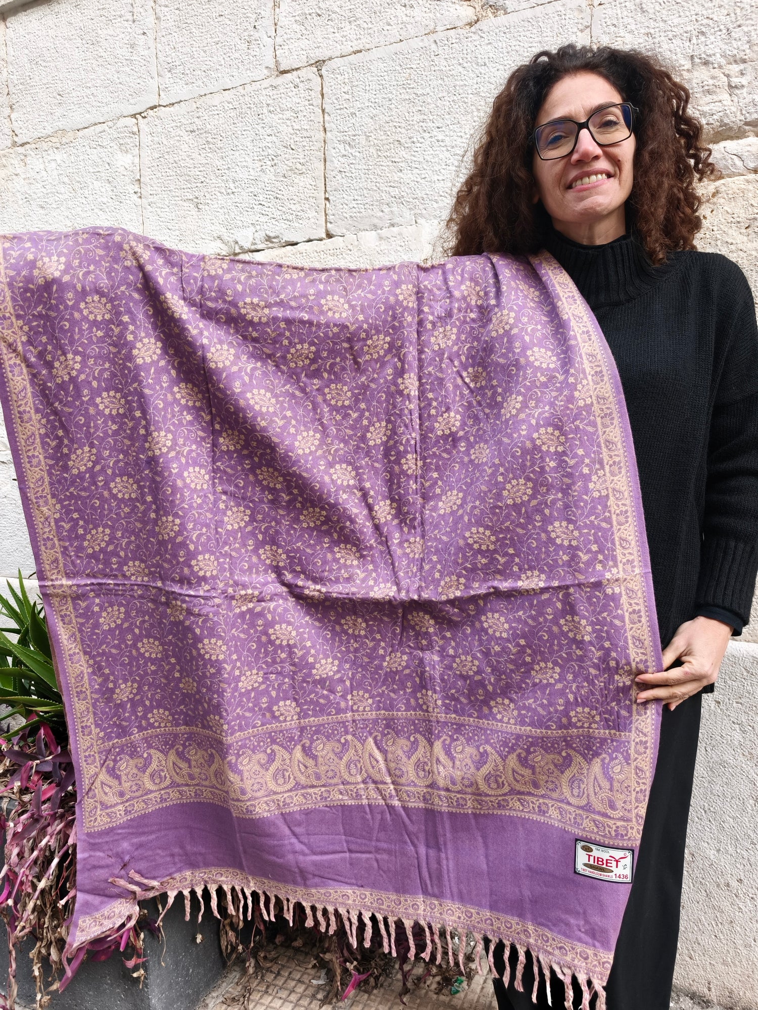 Scialle sciarpa stola Pashmina coperta lana di Yak calda Tibet 69B Difettato