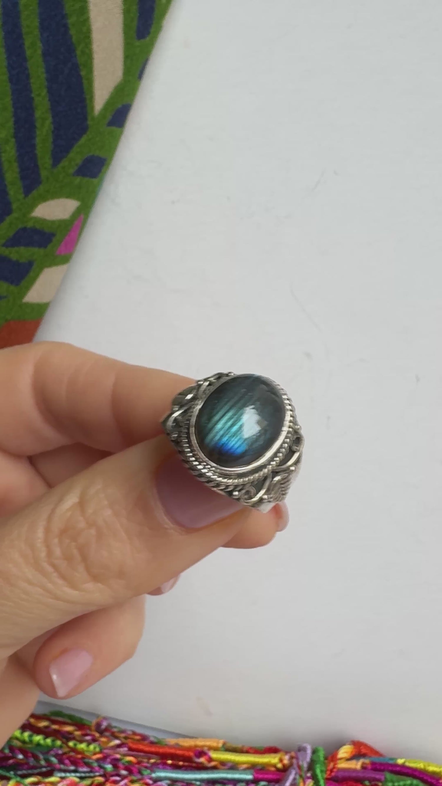 Anello argento 925 labradorite misura 17/18 - 32SZ
