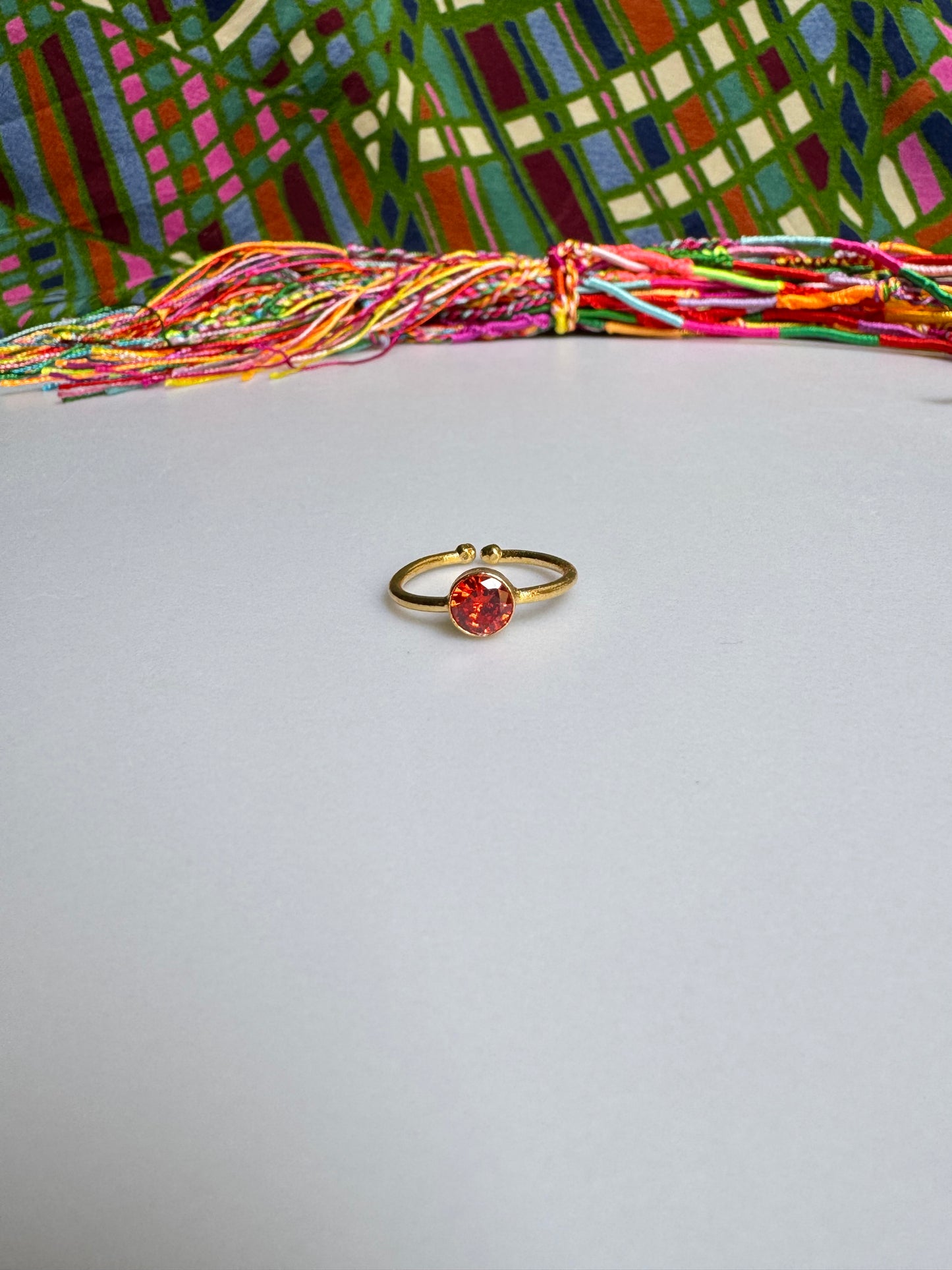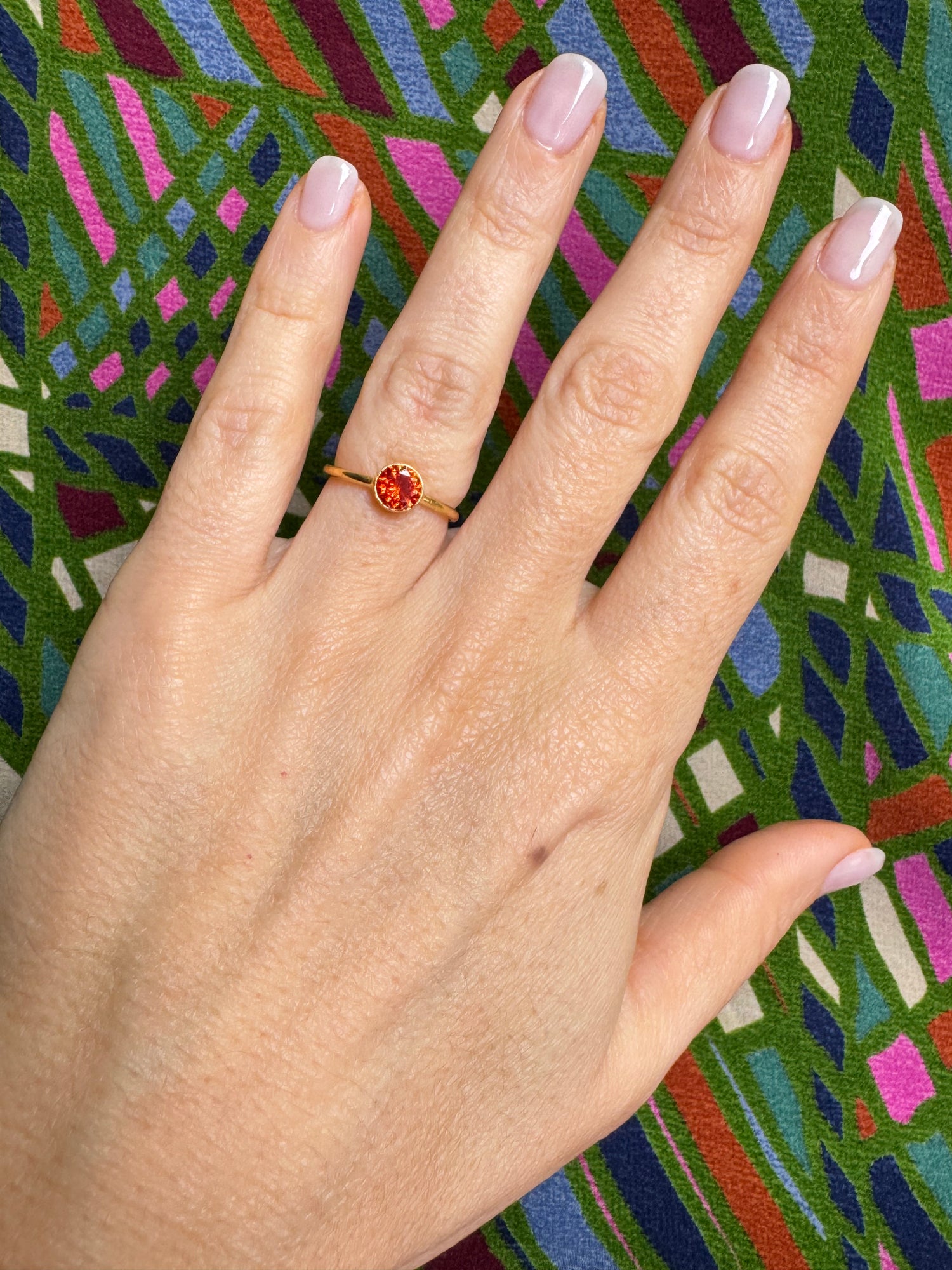 Anello in ottone anallergico con vetro colore arancione. Nichel free. Regolabile.