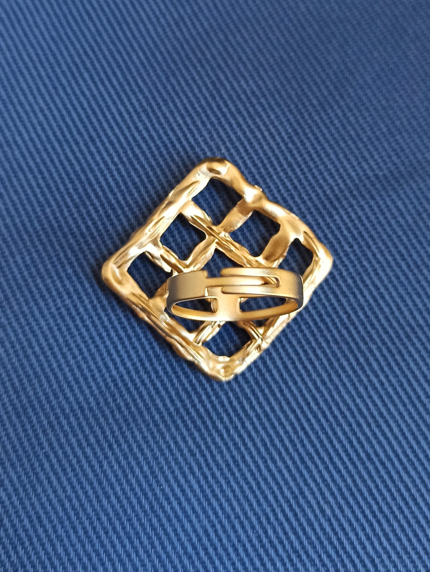 Anello dorato quadrato intreccio
